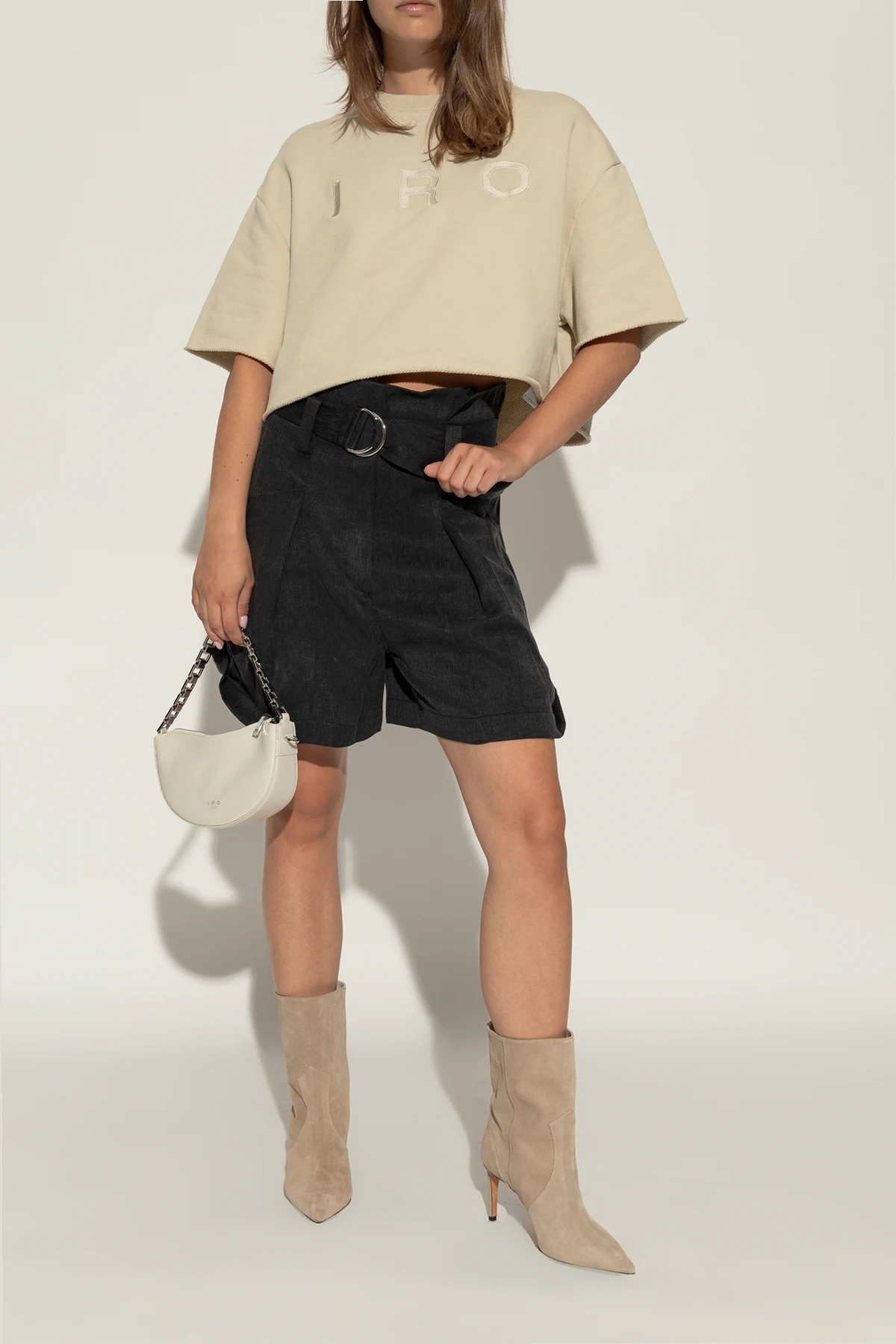 Przedstawiamy botki na obcasie , zaprojektowane przez renomowanego projektanta Iro . Te ekskluzywne buty w beżowoszarym kolorze wyróżniają się klasycznym, eleganckim kształtem i subtelnymi detalami, które podkreślają ich luksusowy charakter.