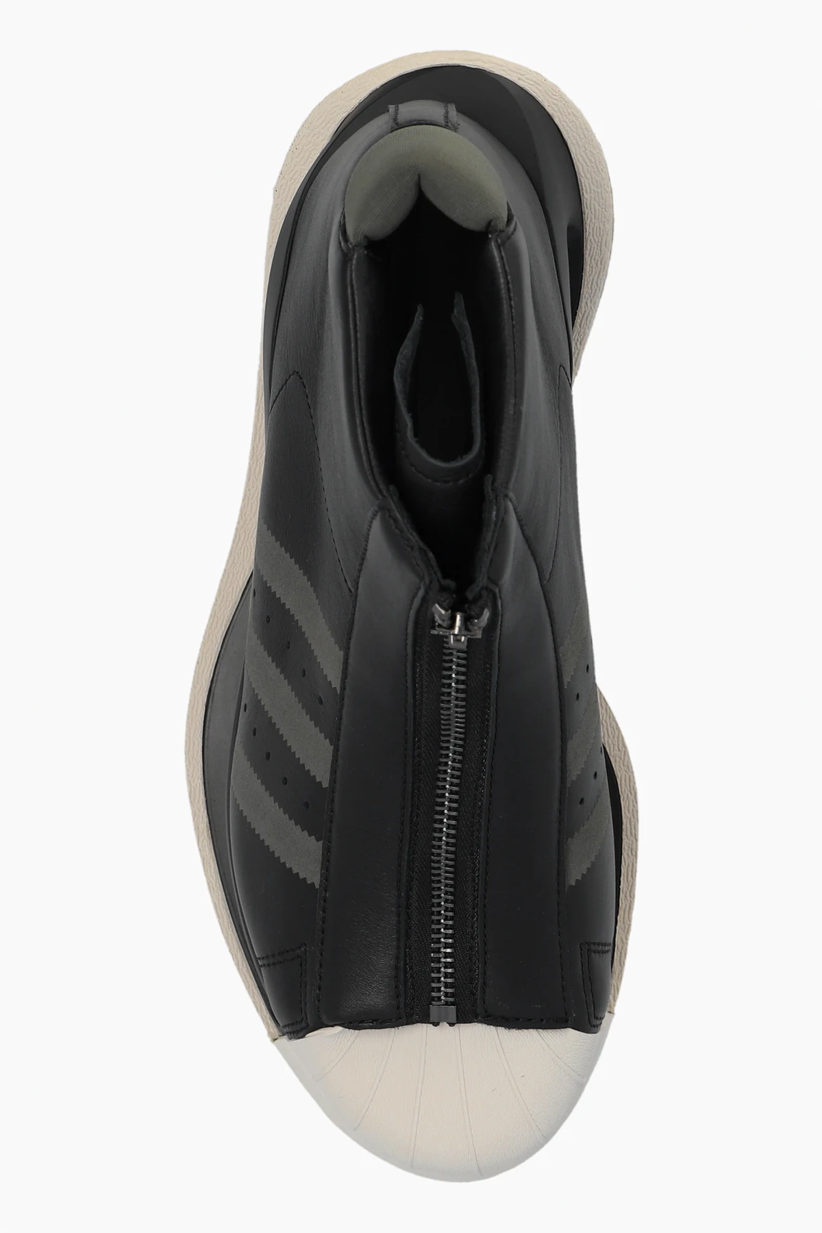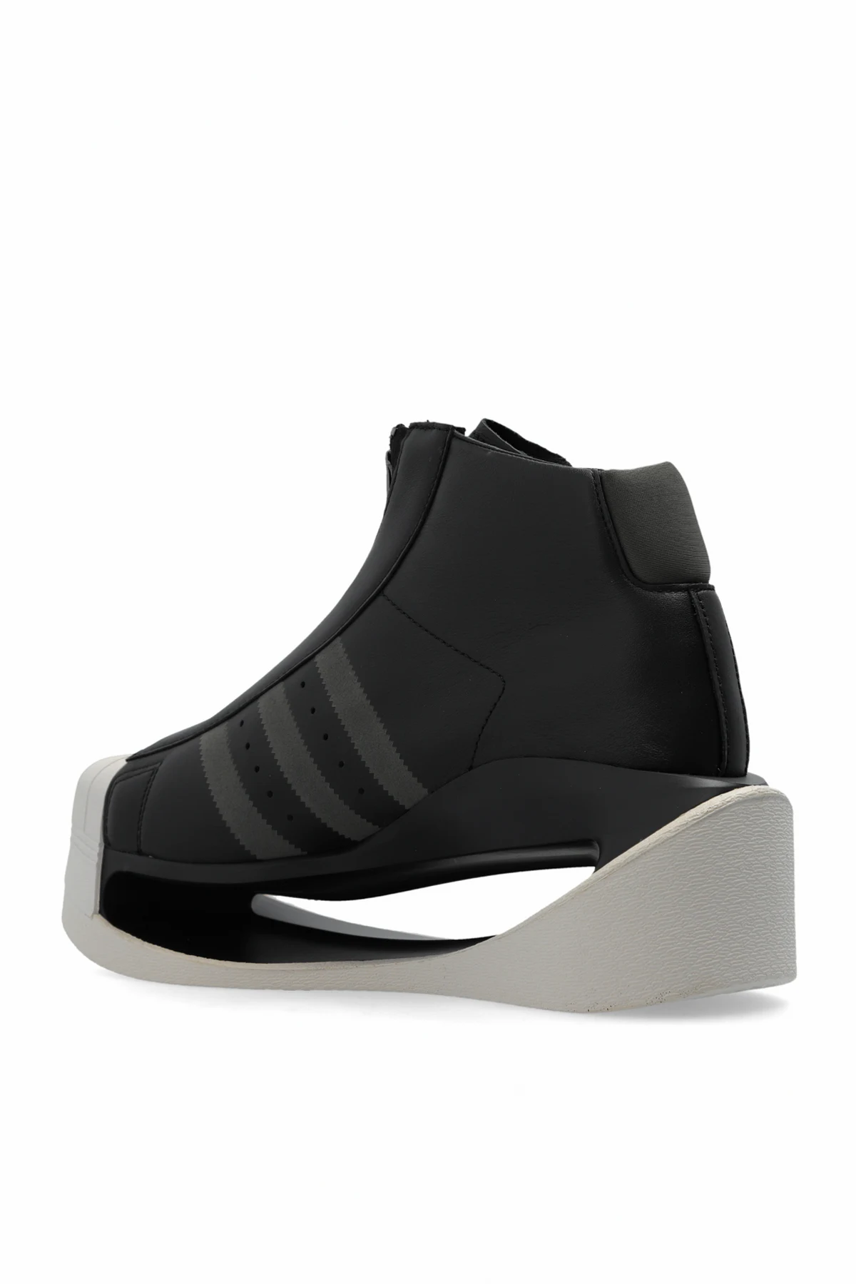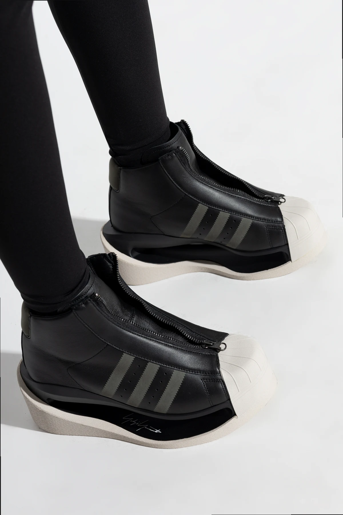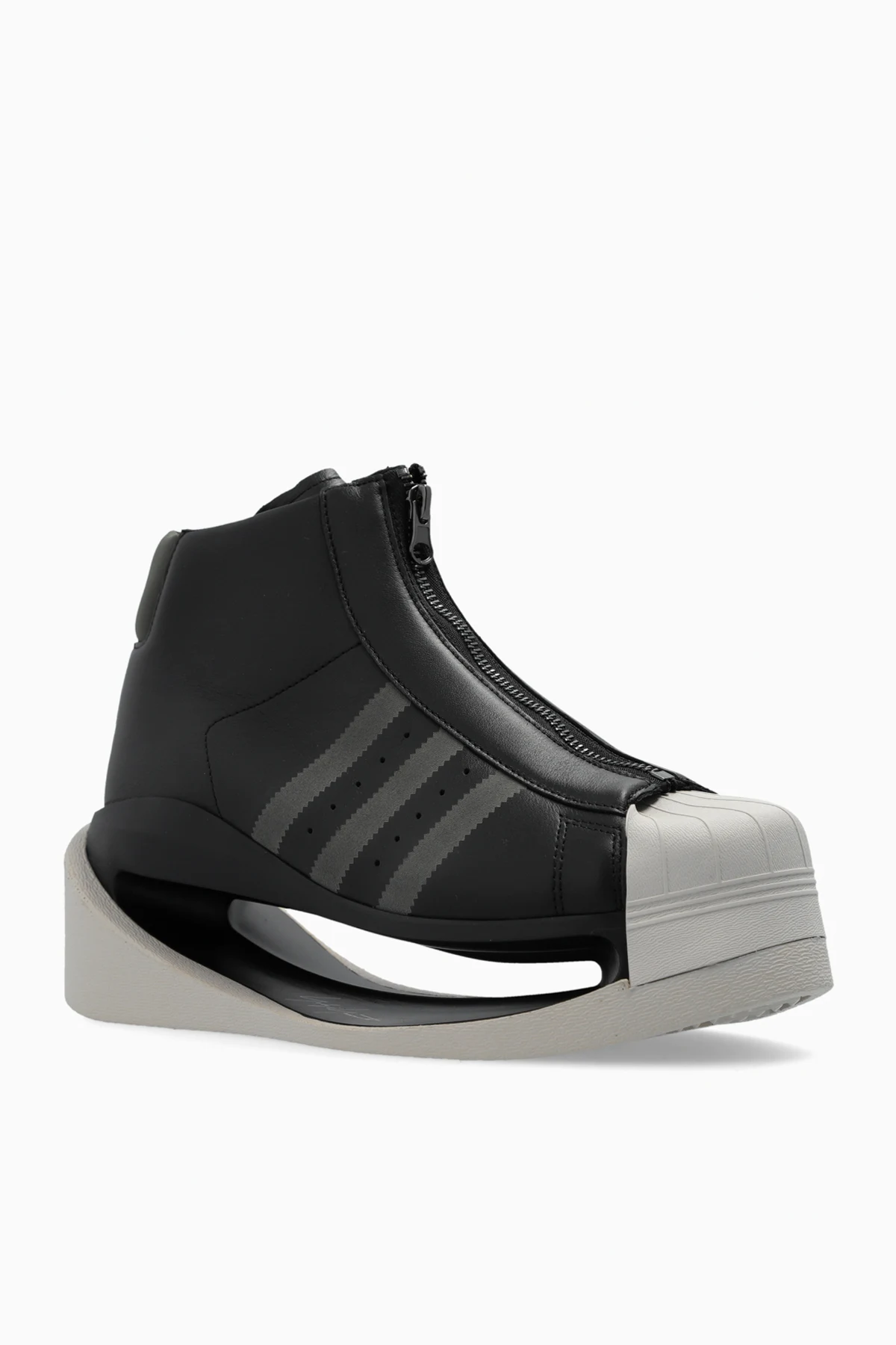 Buty wyróżniają się wysoką platformą i futurystycznym wyglądem. Cholewka sięgająca powyżej kostki gwarantuje dodatkowe wsparcie. Charakterystyczne trzy paski na bocznej stronie butów oraz biała osłona na palce dodają im niepowtarzalnego stylu.