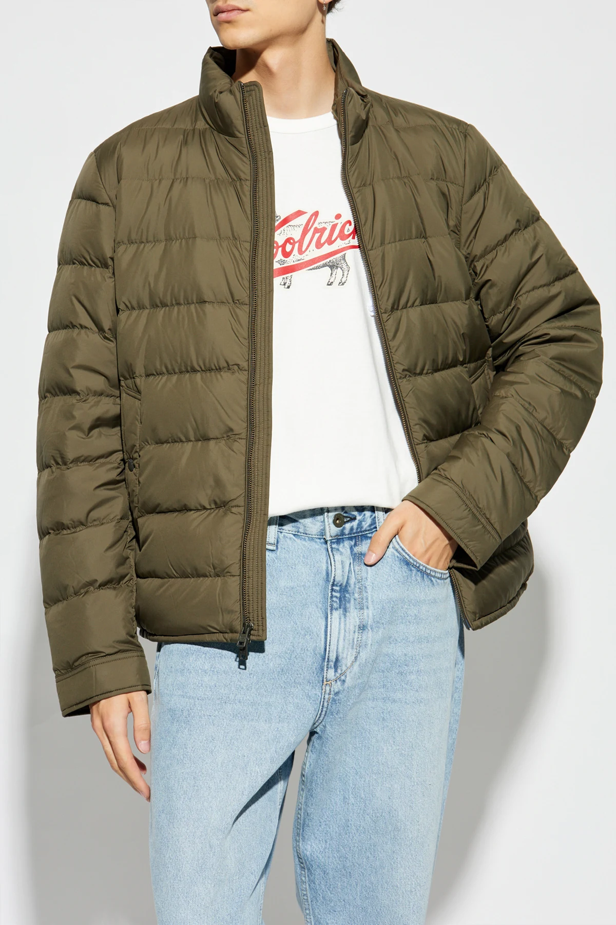 Przedstawiamy pikowaną kurtkę marki Woolrich , która łączy w sobie klasyczny design z nowoczesnymi rozwiązaniami. Wykonana z wysokiej jakości materiałów, jej zewnętrzna warstwa składa się z lekkiego, wodoodpornego poliestru, zaś wypełnienie stanowi mieszanka puchu i pierza, zapewniając doskonałą izolację termiczną.