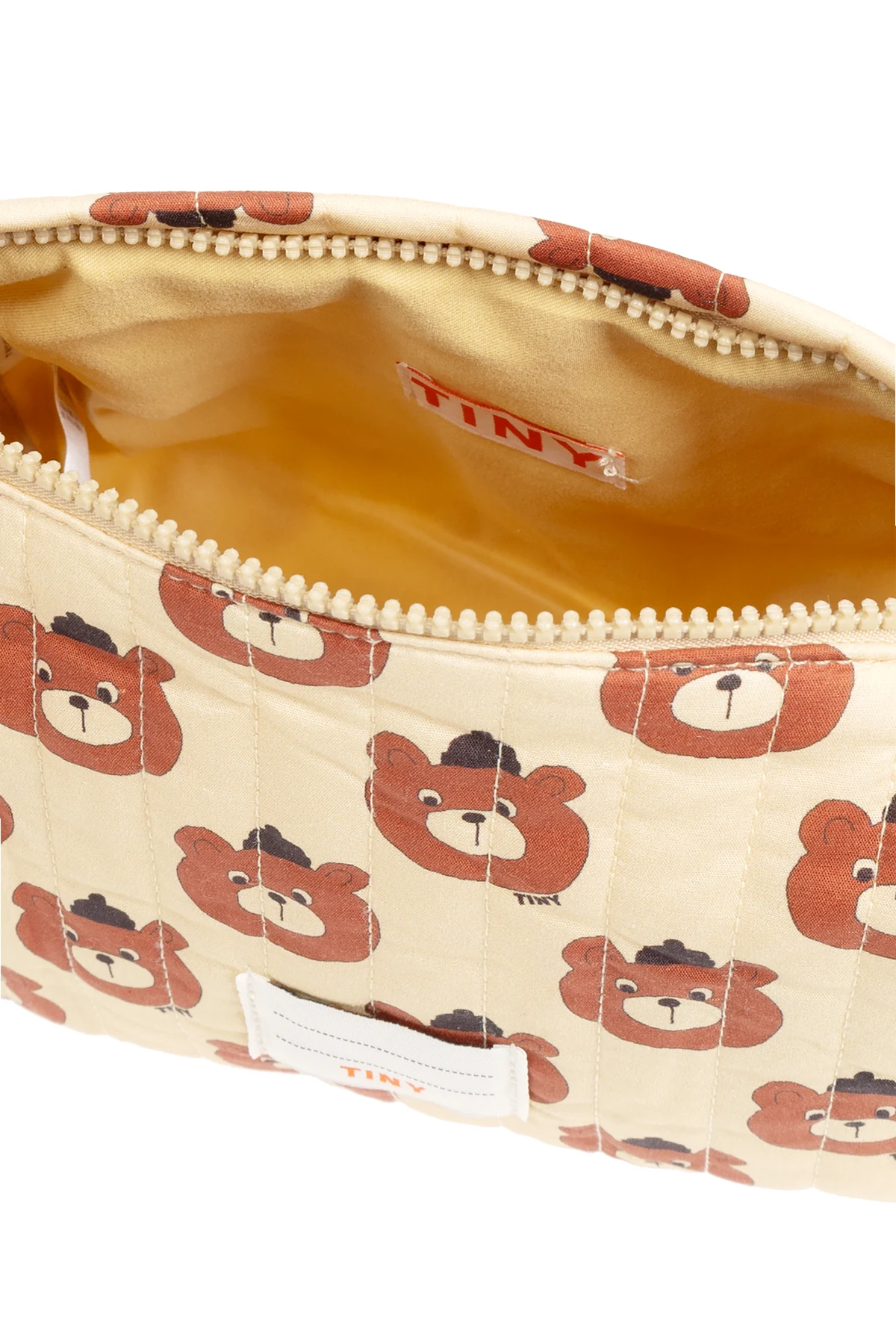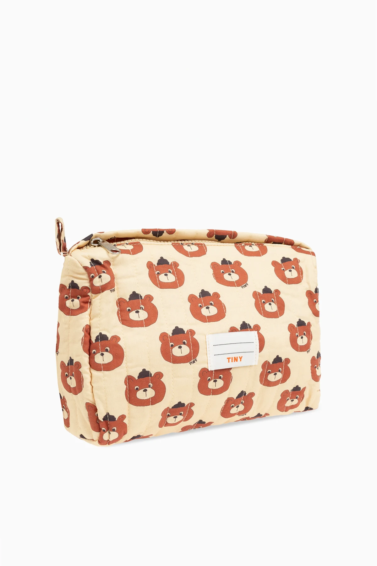 Przedstawiamy kosmetyczkę z motywem misia z ekskluzywnej kolekcji odzieży dziecięcej Tiny Cottons. Ta urocza kosmetyczka, o prostokątnym kształcie, wykonana jest z najwyższej jakości beżowej bawełny, ozdobionej wyjątkowym wzorem misia w kapeluszu, który nadaje jej dziecięcego wdzięku.