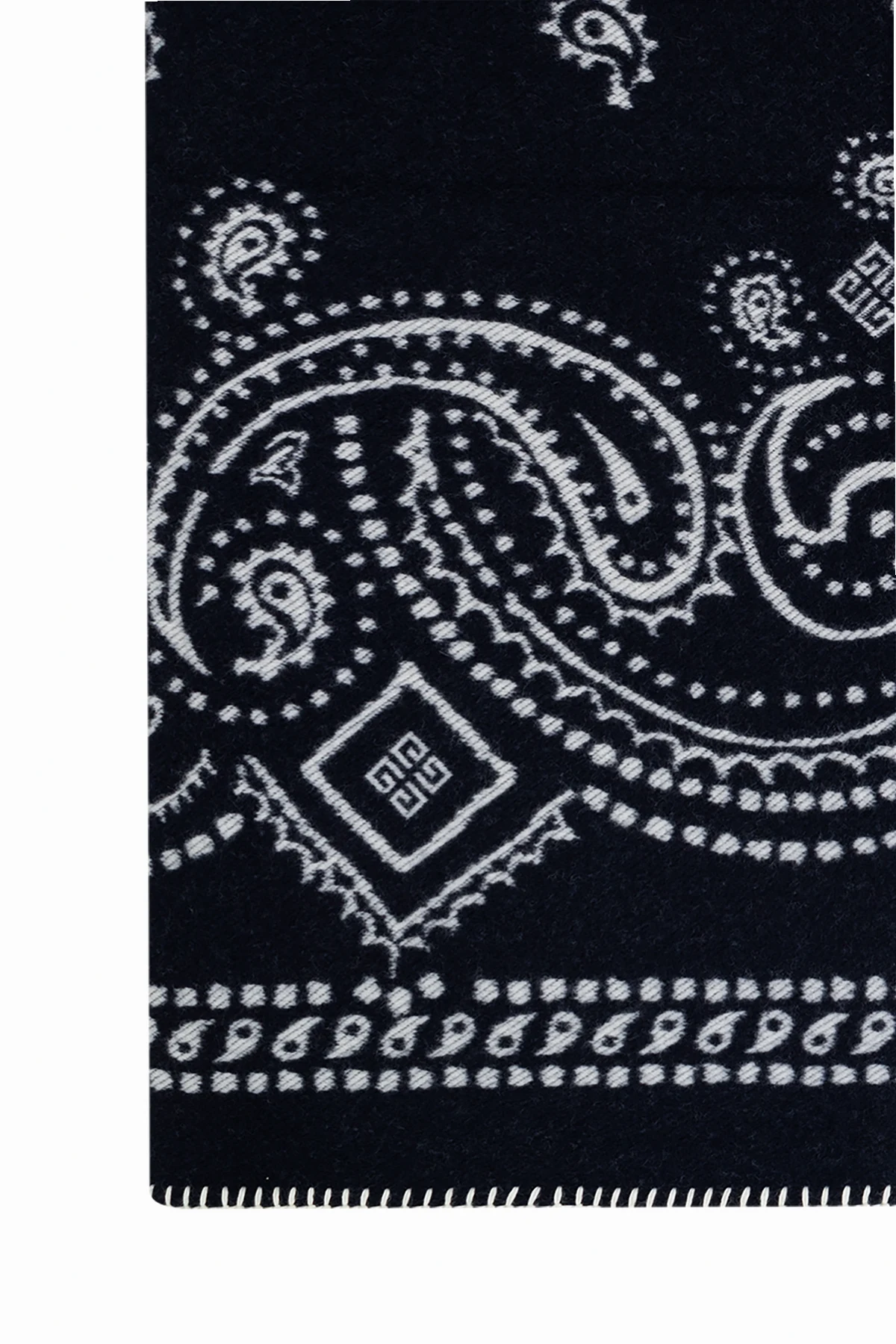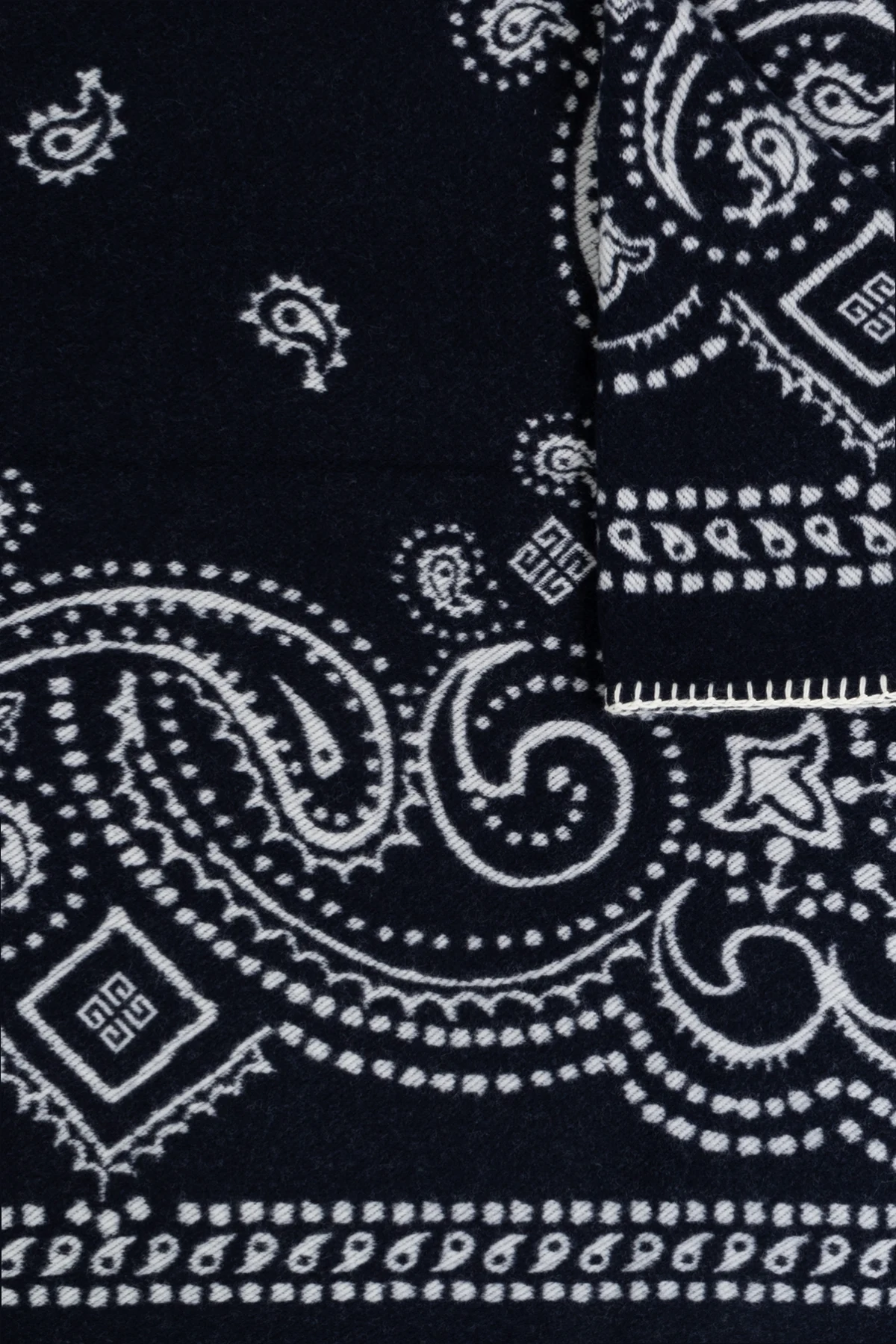 Prezentujemy Państwu granatowy koc z wyszytym wzorem paisley, będący częścią ekskluzywnej kolekcji domu mody Givenchy .