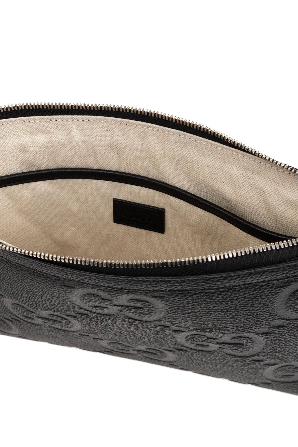 Torba 'Jumbo GG Small' została zaprojektowana z myślą o bezpieczeństwie i wygodzie użytkowania. Jej prostokątny kształt oraz zamknięcie na zamek błyskawiczny u góry gwarantują ochronę przechowywanych przedmiotów. Wnętrze wyłożone jest kremową bawełną , w której znajduje się komora oraz wsuwana kieszeń, umożliwiające organizację przestrzeni.