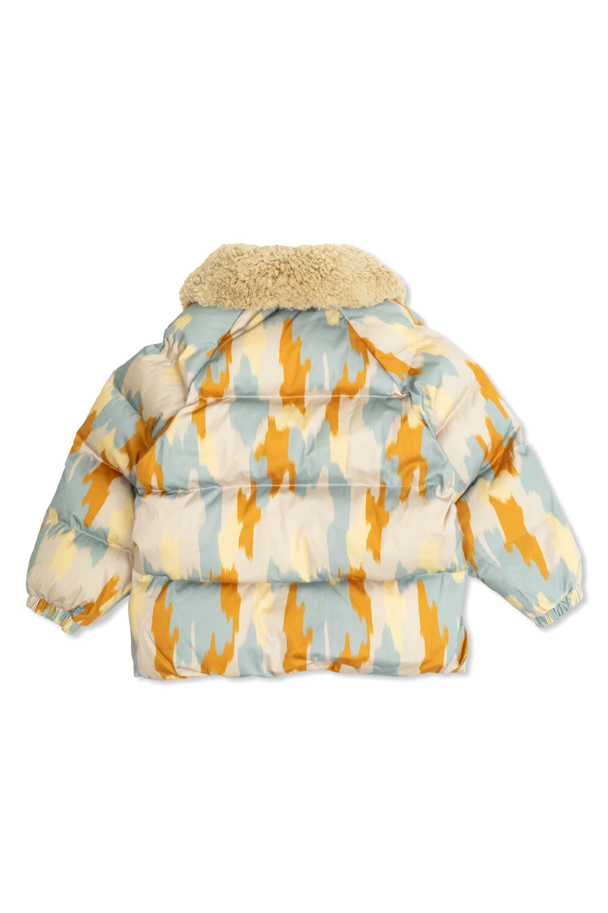 Kurtka dziecięca z ekskluzywnej kolekcji Tiny Cottons to połączenie nowoczesnego designu z najwyższą funkcjonalnością. Ta klasyczna puchowa kurtka w abstrakcyjnym, kamuflażowym wzorze łączy w sobie odcienie żółtego, niebieskiego, białego i pomarańczowego, co nadaje jej niepowtarzalny charakter.