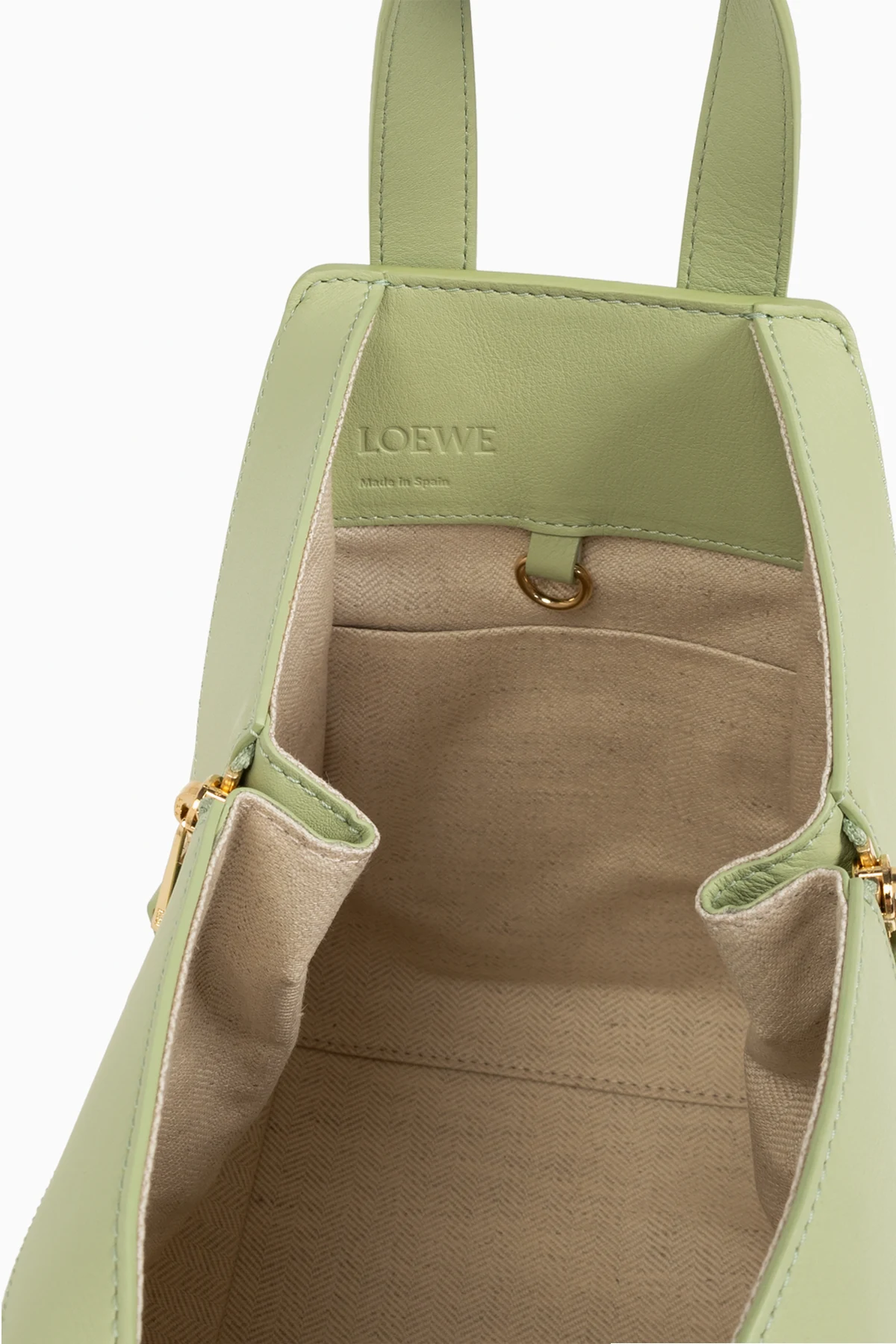 Przestronne wnętrze wykończone beżową podszewką z napisem "LOEWE" zapewnia dużo miejsca na przechowywanie najważniejszych rzeczy. Torba posiada jedną dużą komorę, dwie wsuwane kieszenie oraz dodatkową zewnętrzną kieszeń zamykaną na zamek błyskawiczny, co zwiększa jej funkcjonalność. Z przodu i z tyłu znajdują się zamki umożliwiające zwiększenie pojemności torby.