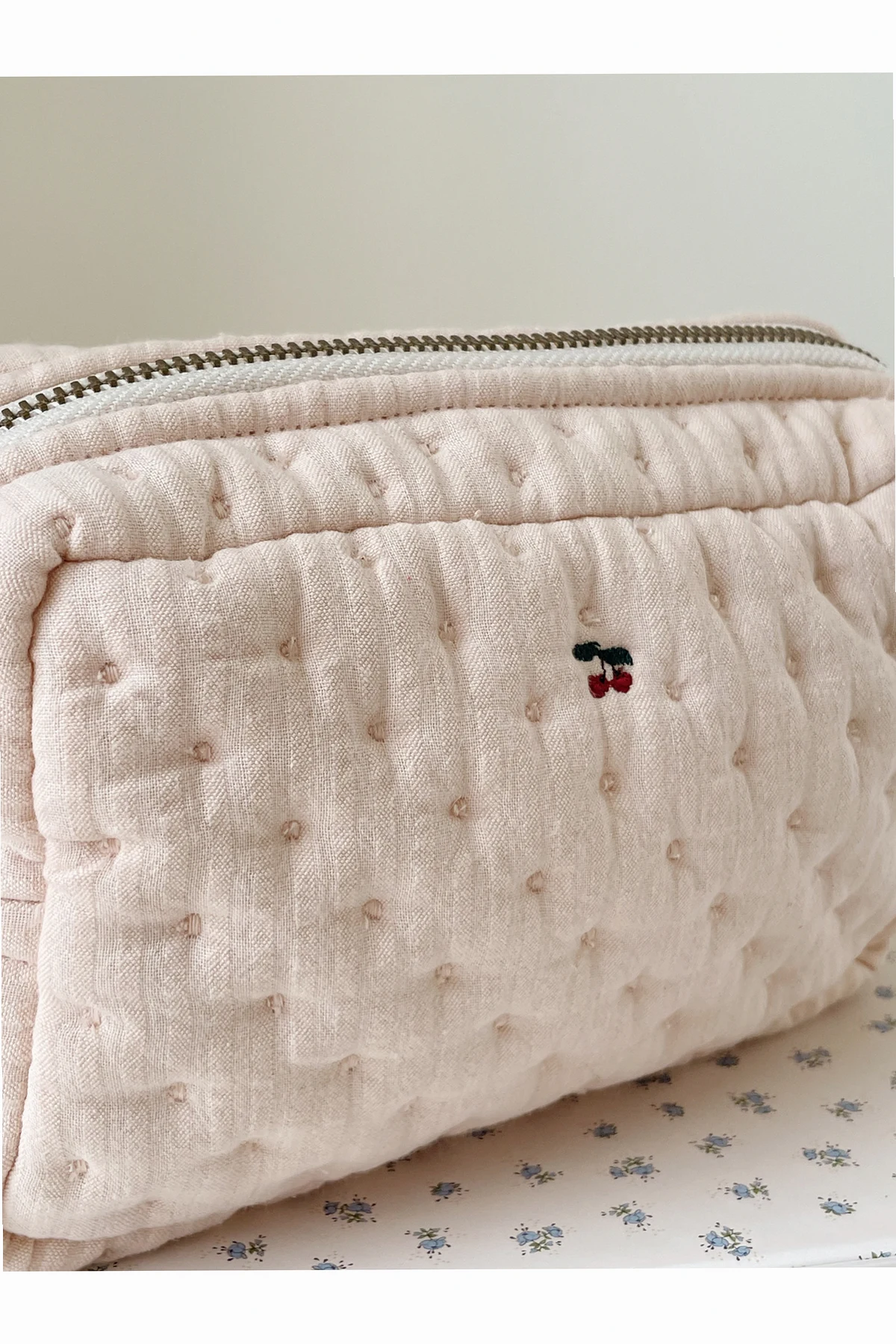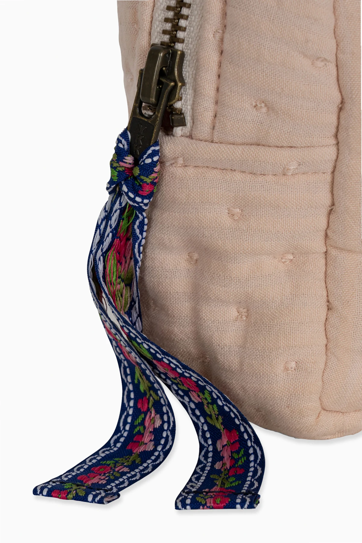 Niebywale urokliwa i funkcjonalna bawełniana kosmetyczka od Konges Sløjd to kwintesencja skandynawskiego designu połączonego z praktycznością. Wykonana z najwyższej jakości 100% bawełny organicznej , cechuje się pikowaną strukturą, która nie tylko dodaje jej wyjątkowego charakteru, ale również zapewnia dodatkową ochronę zawartości. Delikatny, pastelowy róż oraz subtelne, pikowane wzory tworzą harmonijną całość, która będzie pasować do każdej damskej torebki czy plecaka dziecka.