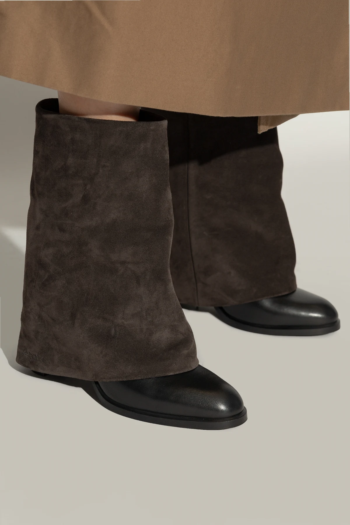 Przedstawiamy skórzane kozaki z ekskluzywnej kolekcji marki See By Chloé , które urzekają swoim niepowtarzalnym designem i ponadczasową elegancją. Kozaki zostały zaprojektowane z myślą o wyrafinowanym stylu, a ich charakterystyczna, szeroka cholewka z zamszowego materiału w kolorze brązowym, rozszerzająca się ku górze, dodaje im wyjątkowego uroku.