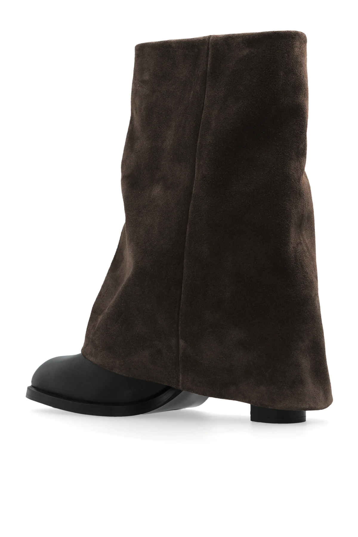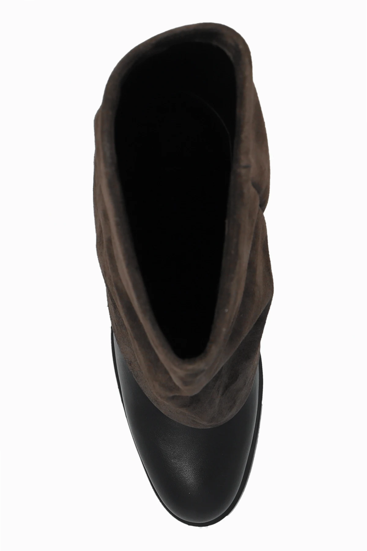 Kontrastowa kolorystyka: Brązowa cholewka i czarna dolna część.