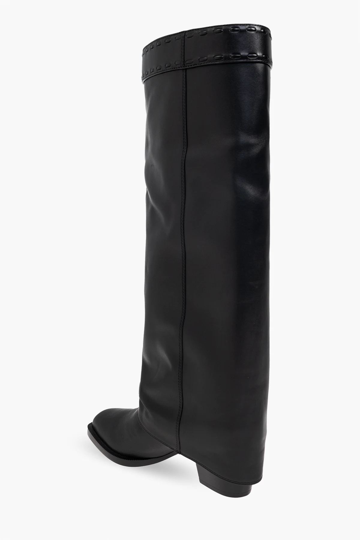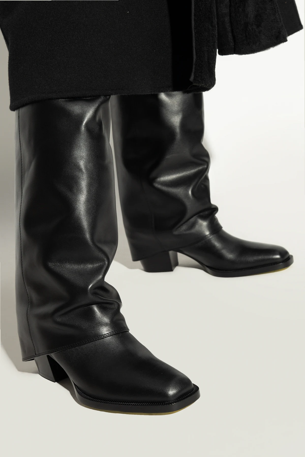 Odkryj nieprzemijającą elegancję w postaci skórzanych kozaków do kolan "Show" od renomowanego domu mody Fendi. Te wykwintne buty łączą w sobie klasykę z nowoczesnością, stanowiąc nieodłączny element wyrafinowanej garderoby.