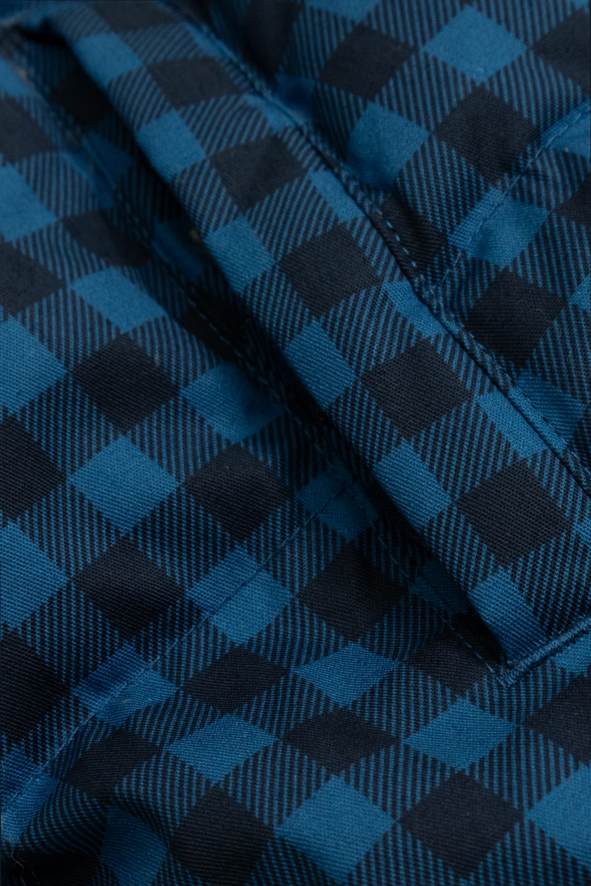 Elegancki design z granatowym wzorem w kratę.