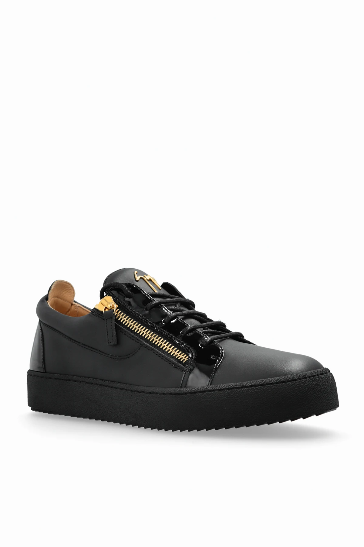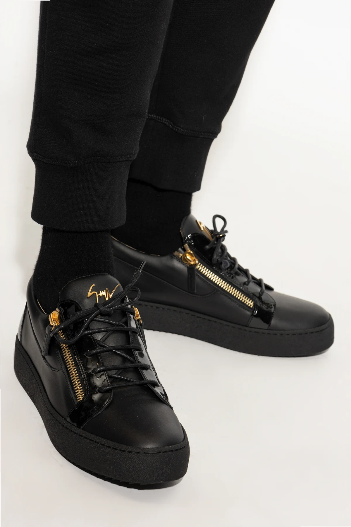 Zachwycające buty sportowe marki Giuseppe Zanotti to wykwintna propozycja dla koneserów luksusu, ceniących kunszt włoskiego rzemiosła. Niskoprofilowy fason typu low-top z zaokrąglonym noskiem i masywną, harmonijną podeszwą podkreśla ich designerski charakter, a minimalistyczny wzór eksponuje wyrafinowanie formy.