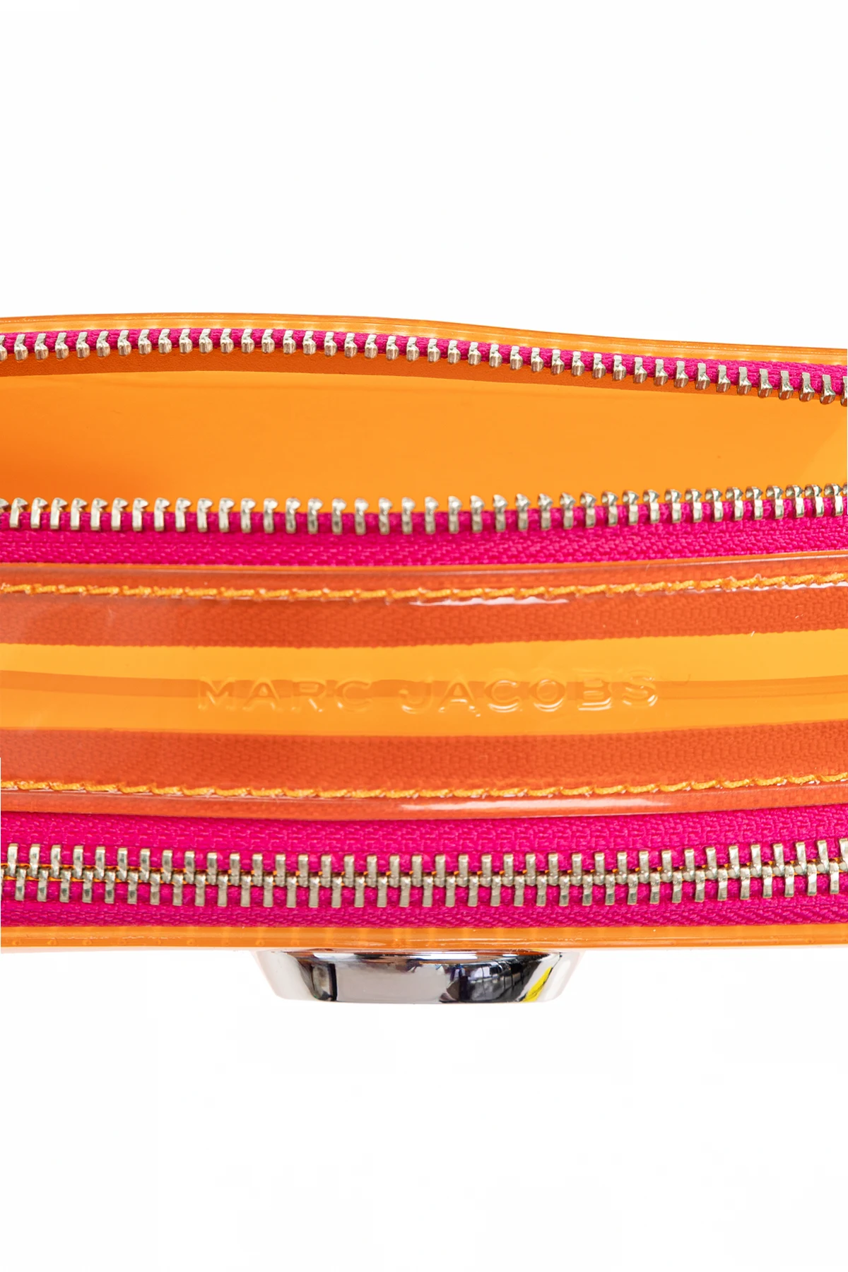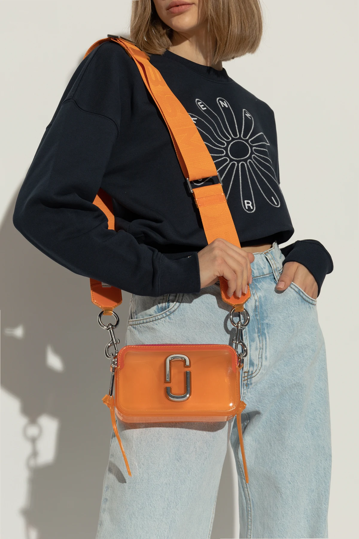Prezentujemy Państwu kwintesencję miejskiego szyku – Torbę na ramię 'The Jelly Snapshot' od renomowanego projektanta Marc Jacobs . Ten wyrafinowany dodatek, wykonany z najwyższej jakości 100% PVC , zachwyca swoją niebanalną estetyką i praktycznością. Dominujący pomarańczowy kolor, w połączeniu z metalicznymi akcentami i błyszczącym logo, wyraża śmiałość i nowoczesność.