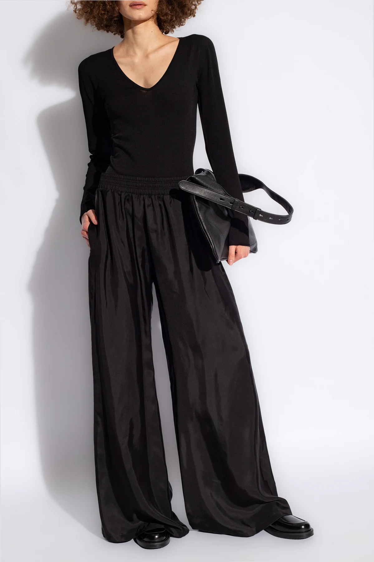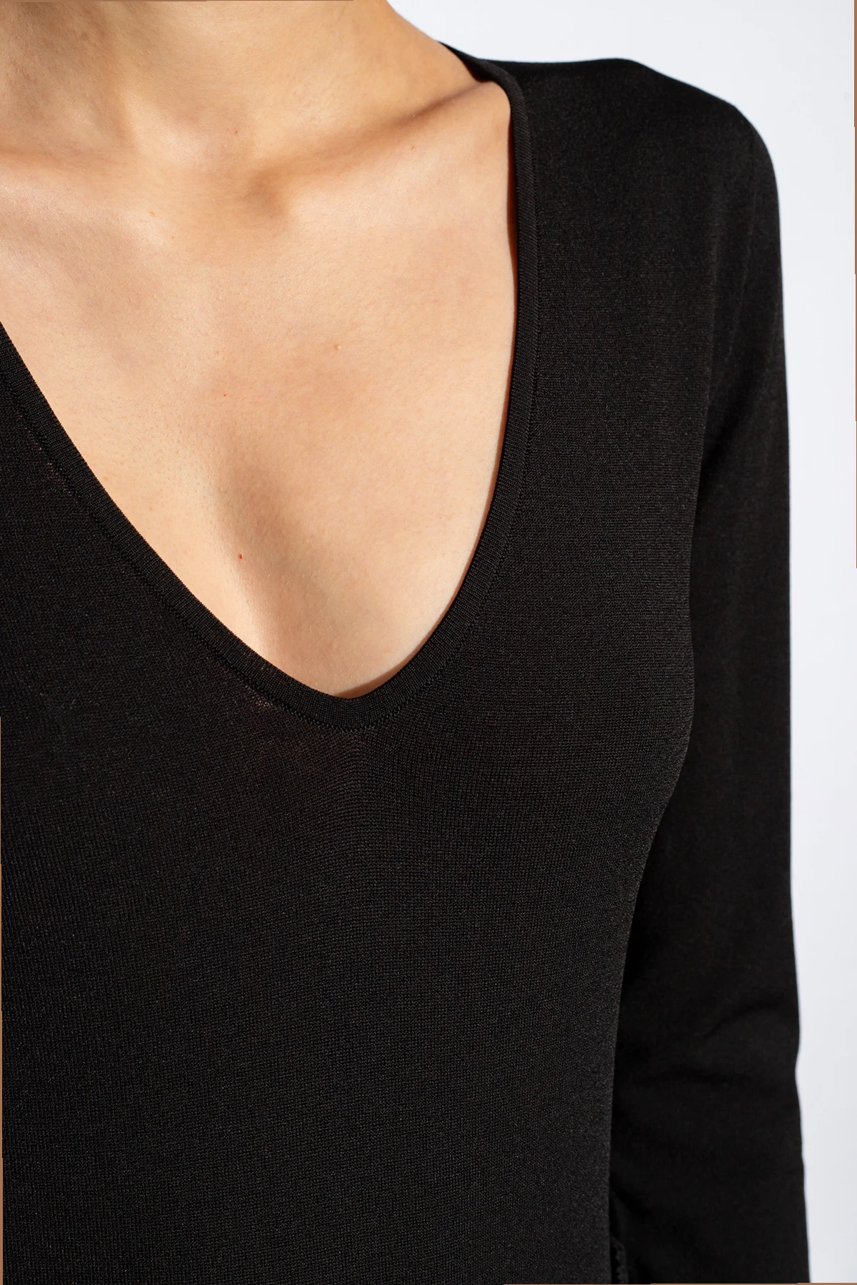 Czarne body Fabiana Filippi. Zapinane na dole na zatrzaski. Dekolt w serek. Długie rękawy.