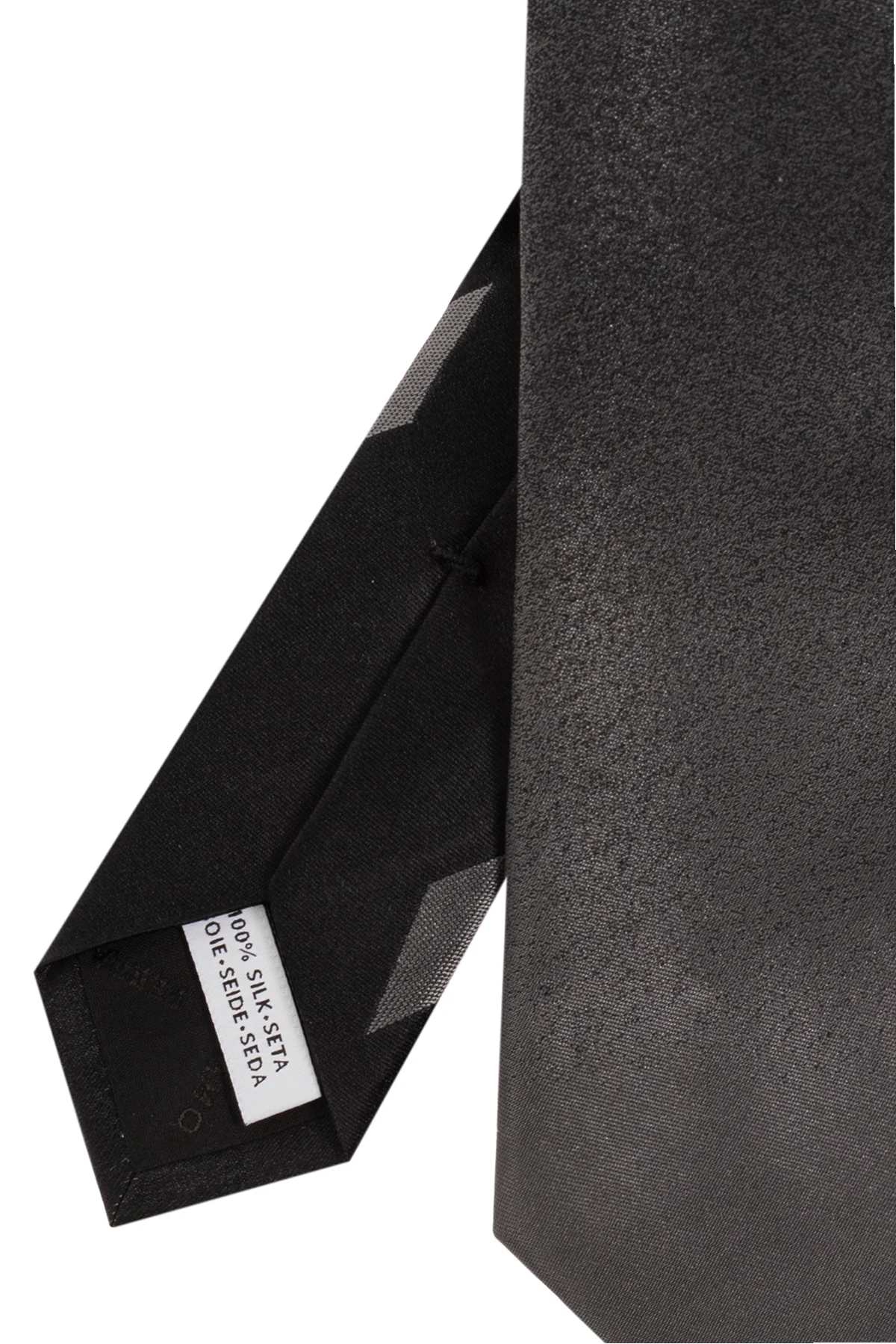 Szaro-czarny krawat, model ‘Tokio’ FERRAGAMO. Wykonany z jedwabiu. Ozdobiony gradientowym przejściem.
