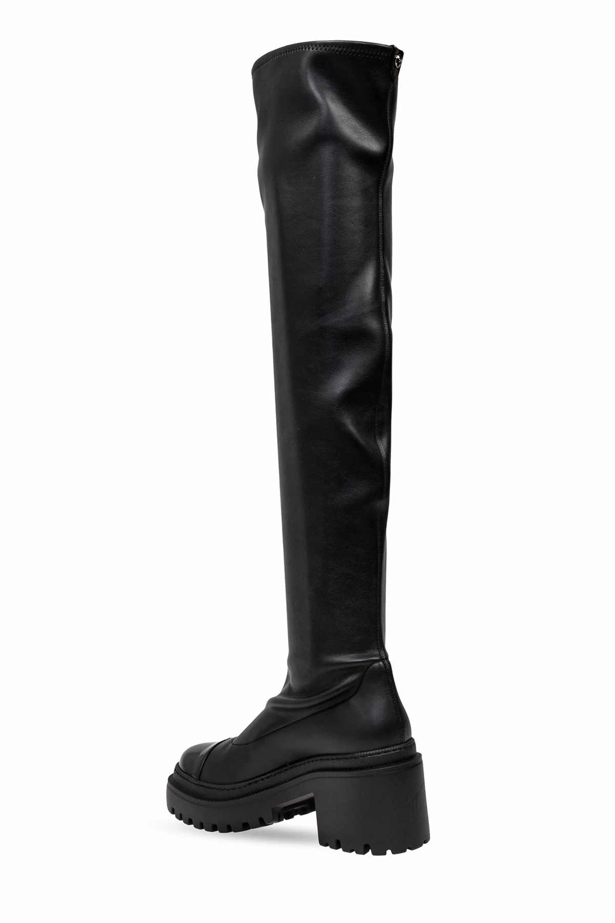 Prezentujemy Państwu wyjątkowe botki za kolano ‘Martini’ od cenionego projektanta Giuseppe Zanotti , które stanowią kwintesencję wyszukanego stylu i elegancji. Wykonane z najwyższej jakości skóry, te czarne botki zachwycają gładkim wykończeniem oraz wysokim połyskiem, dodającym każdej stylizacji nieco luksusu.