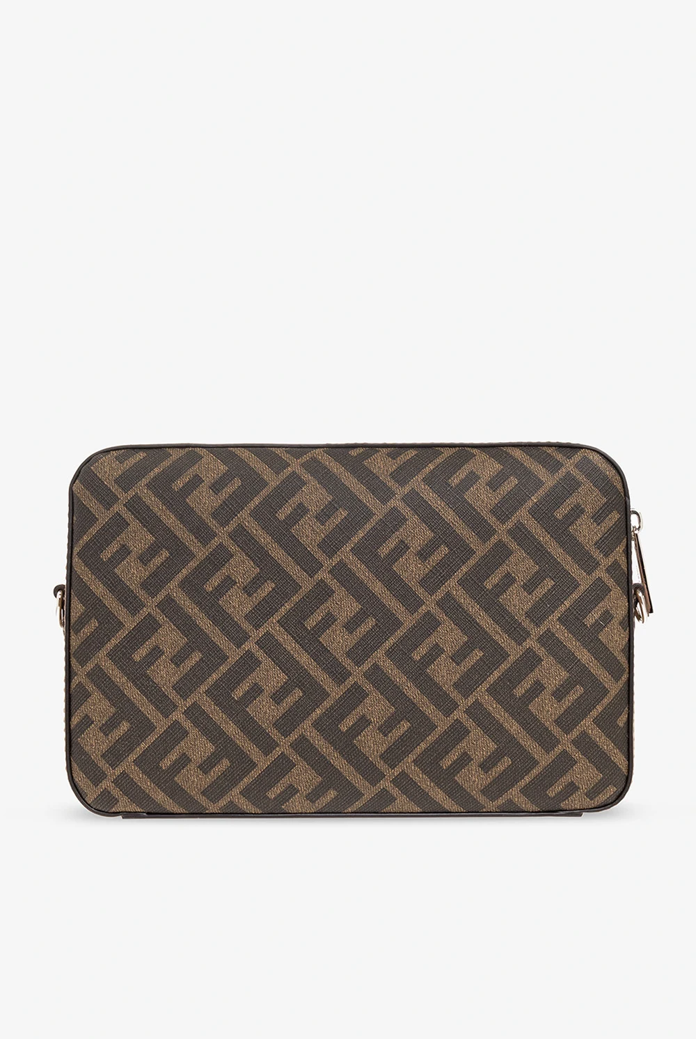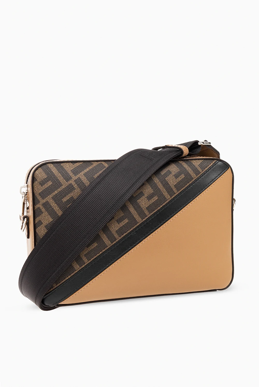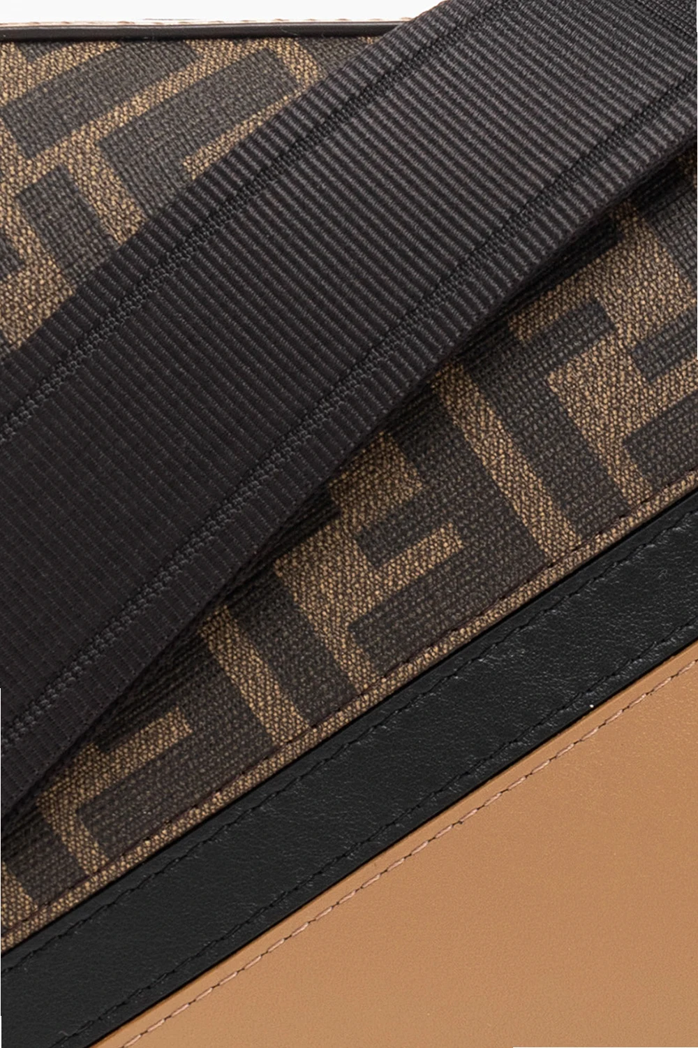 Brązowa torba na ramię Fendi. Wykonana ze skóry cielęcej. Wykończona płótnem z nadrukowanym wzorem z monogramem. Zapinana na zamek. Odpinany pasek na ramię z możliwością regulacji. Wewnątrz komora, wsuwana kieszeń oraz sześć miejsc na karty.