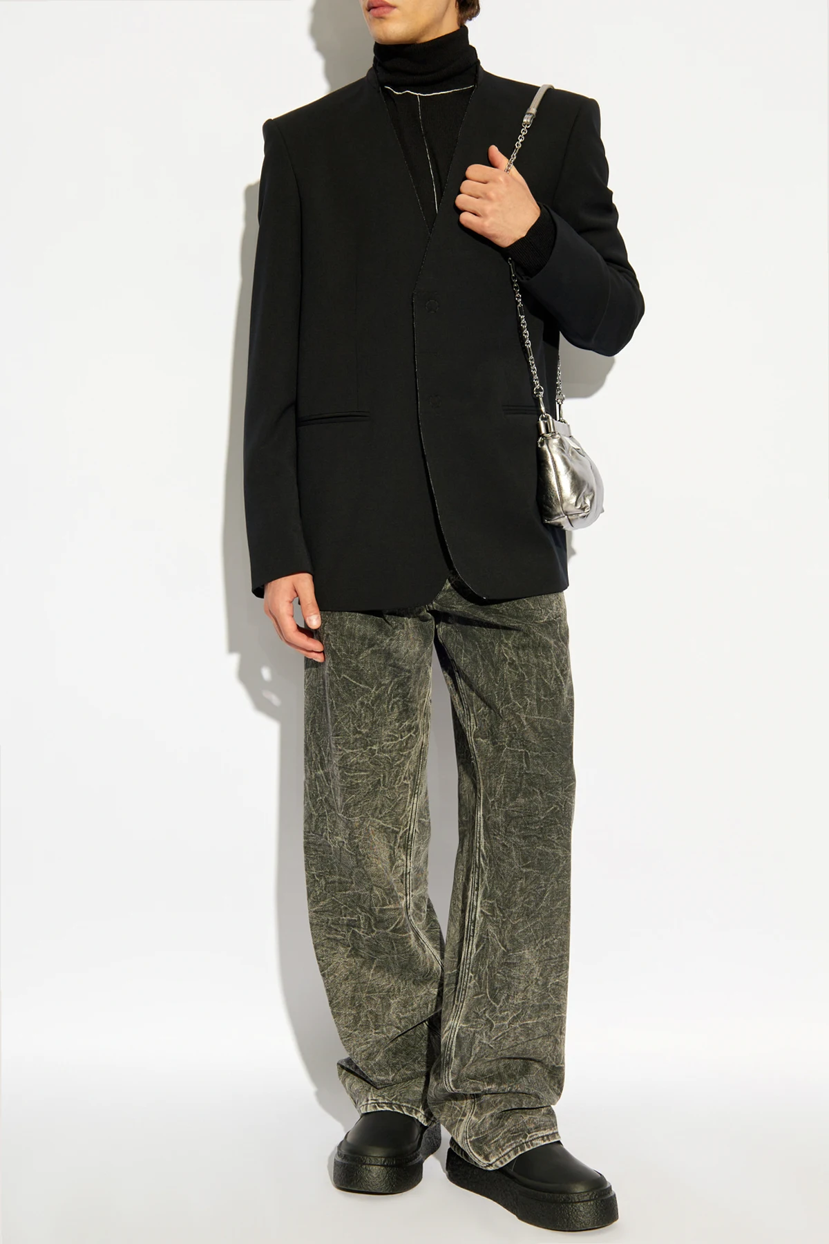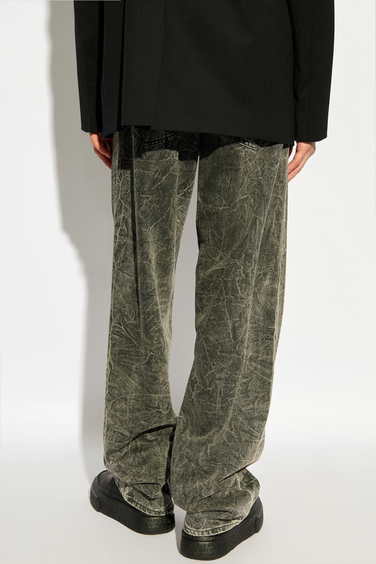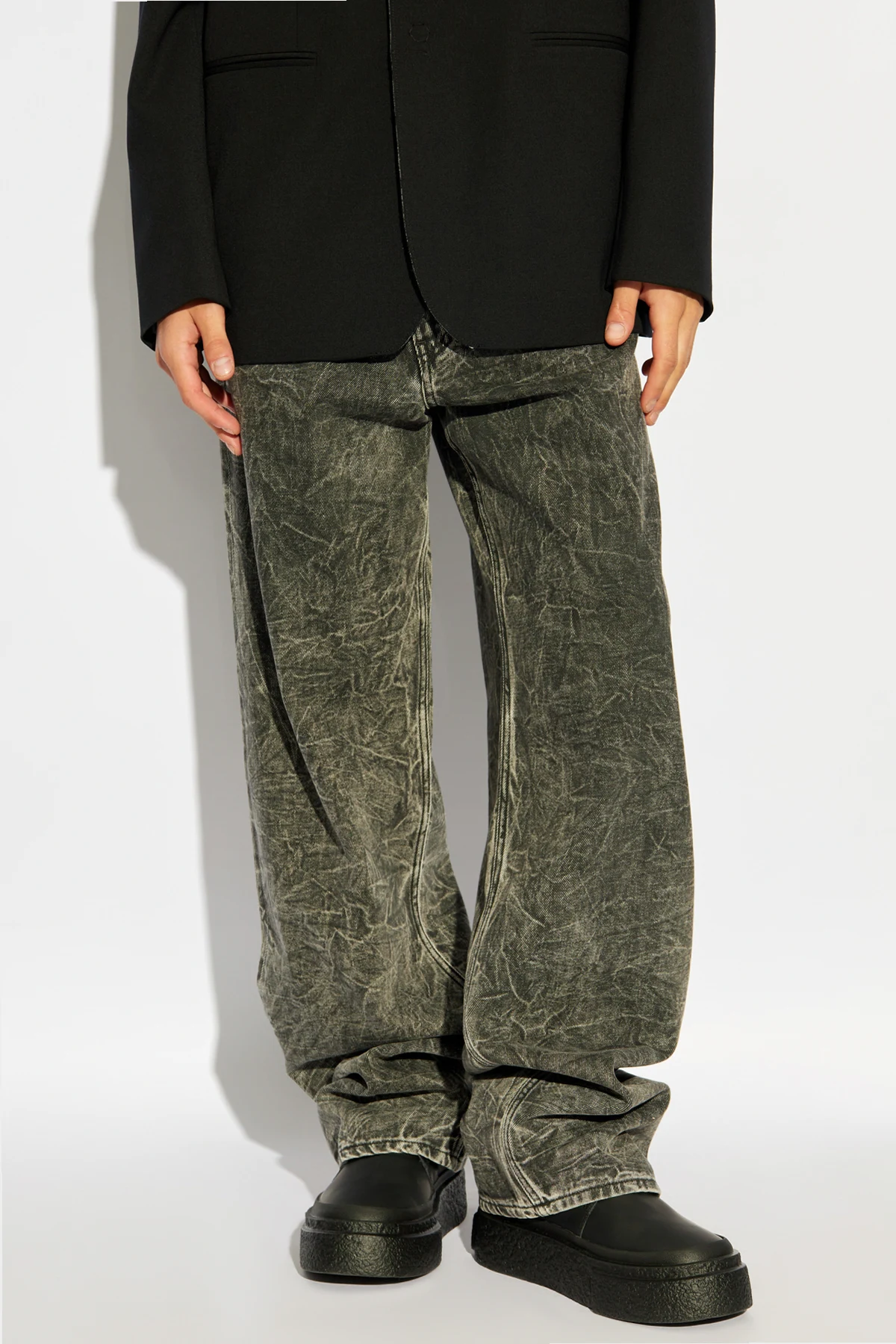 Przedstawiamy Państwu wykwintne jeansy typu ‘straight’ od cenionej marki MM6 Maison Margiela , które są kwintesencją nie tylko ponadczasowego stylu, ale i subtelnego luksusu. Wykonane z najwyższej jakości, 100% bawełny, te spodnie zachwycają unikalną teksturą denimu, przywodząc na myśl efekt autentycznego zużycia. Ich szary kolor, przełamany nieregularnymi, jaśniejszymi oraz ciemniejszymi liniami, nadaje im wygląd vintage, a zarazem nowoczesną elegancję.
