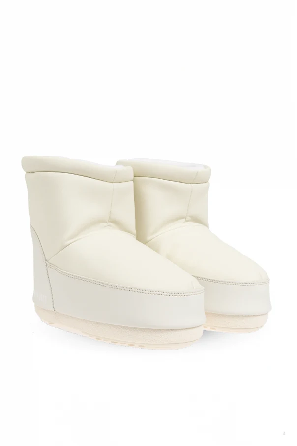 Śniegowce wykonane są z kremowego, gładkiego materiału, który jest wodoodporny oraz doskonale izoluje przed zimnem. Wnętrze buta wyściełane jest miękkim, futrzanym materiałem, co gwarantuje niezrównany komfort i ciepło w najzimniejsze dni. Na bocznej części buta znajduje się subtelny napis "MOON BOOT" w kolorze białym, co nadaje im wyjątkowy charakter.