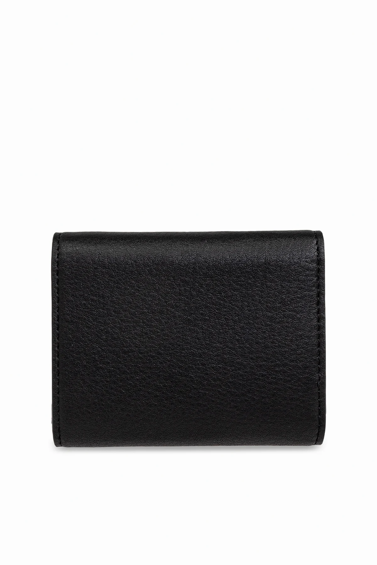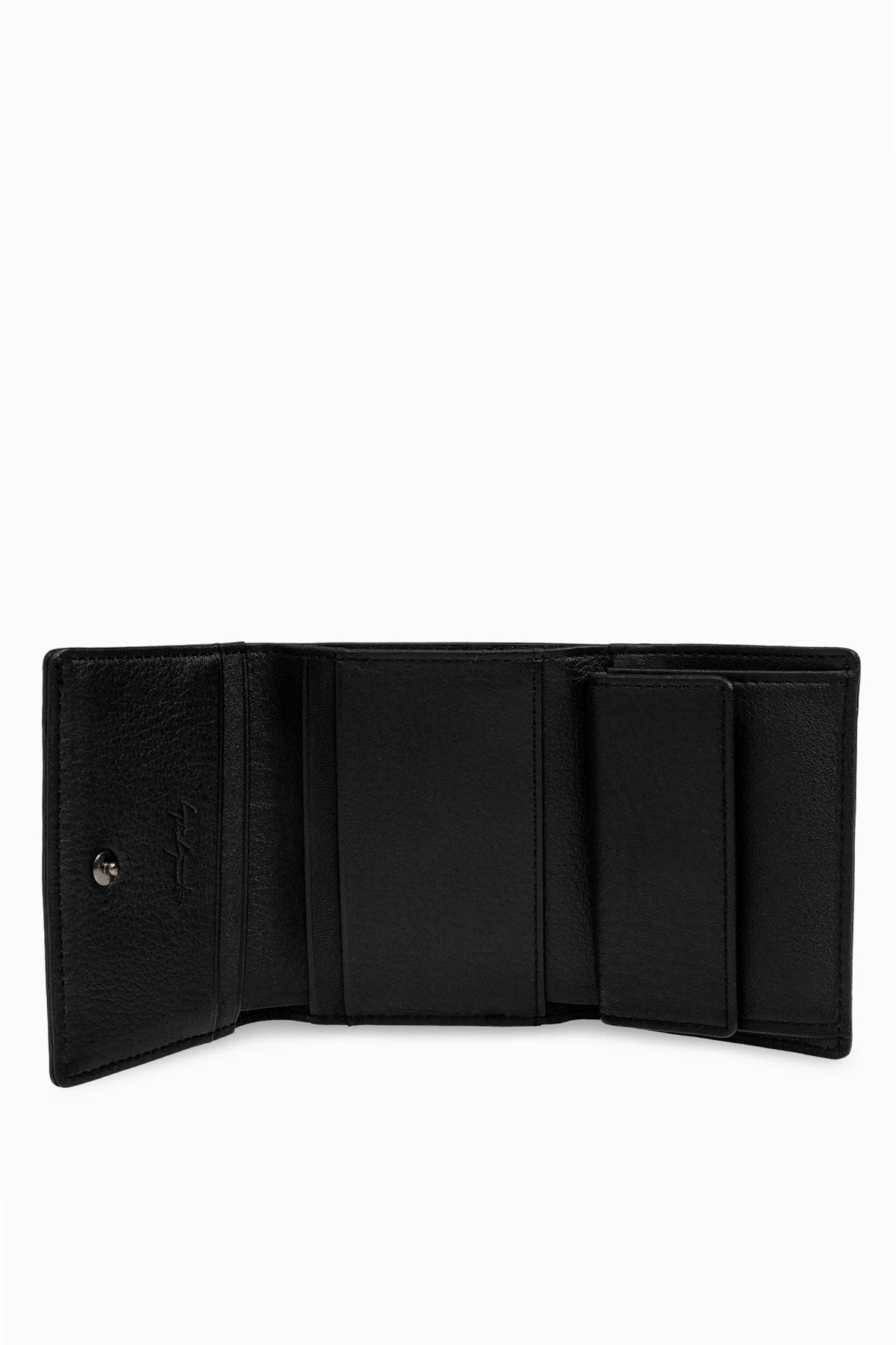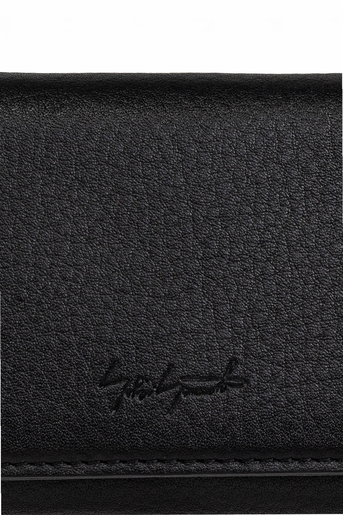 – Czarny skórzany portfel o ziarnistej fakturze