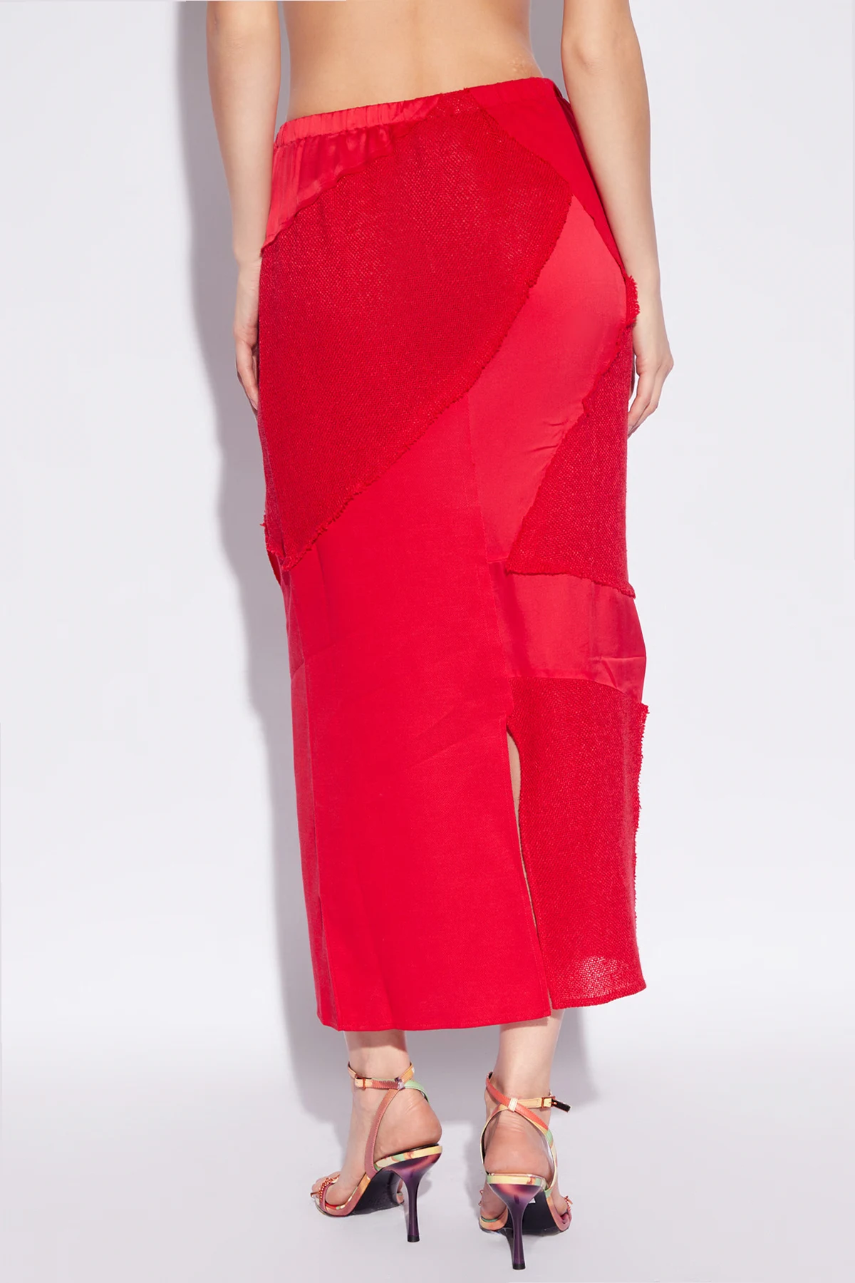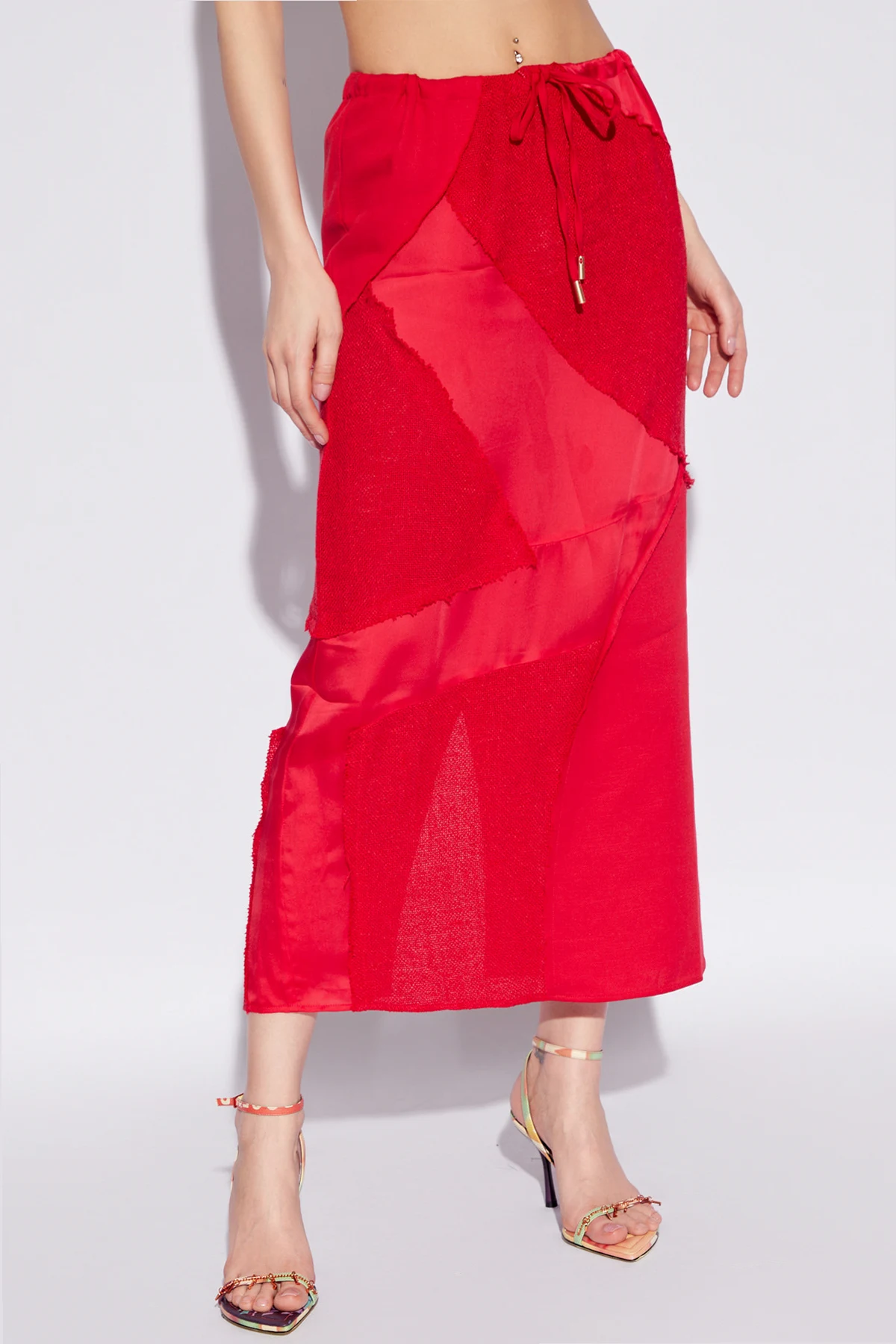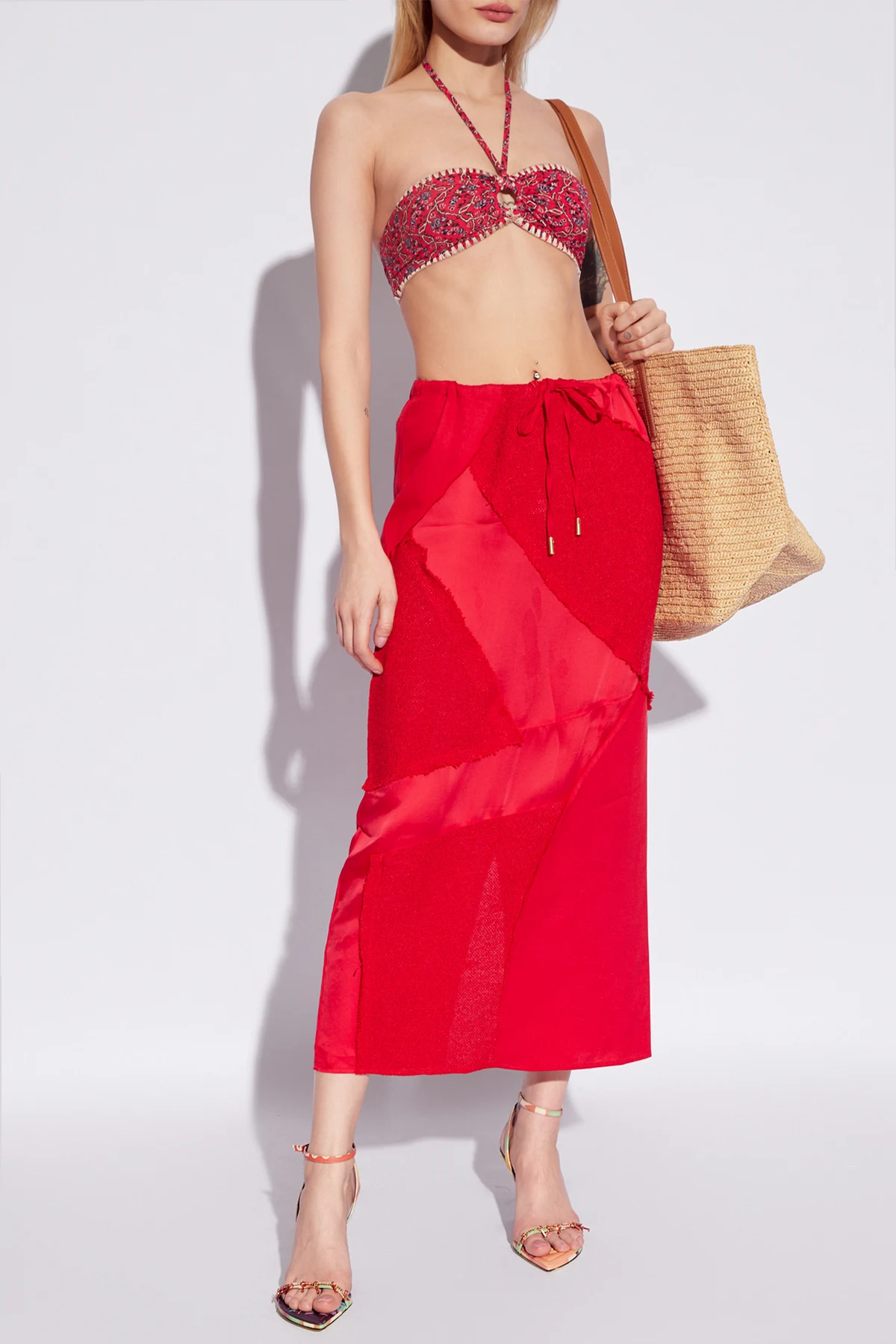Prezentujemy Państwu spódnice ‘Via’ od renomowanej marki Cult Gaia , która jest kwintesencją wyrafinowania i innowacyjności w dziedzinie mody. Ten niepowtarzalny projekt wykonany z połączenia wiskozy i bawełny, urzeka intensywnością czerwieni oraz bogactwem faktur i odcieni, tworząc efekt estetycznego patchworku.