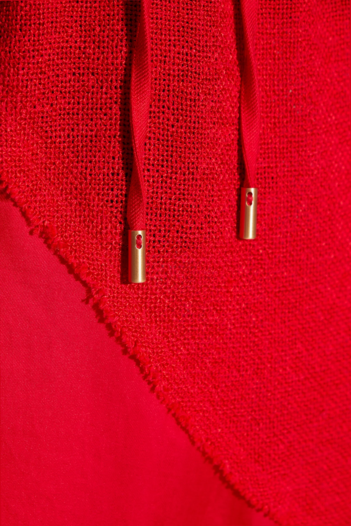 Niezwykła kombinacja materiałów i odcieni czerwieni tworzy unikatowy efekt wizualny.