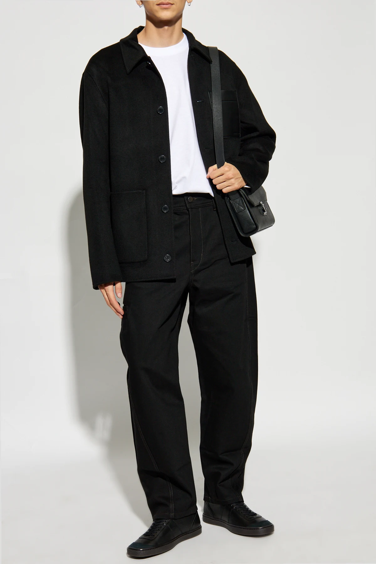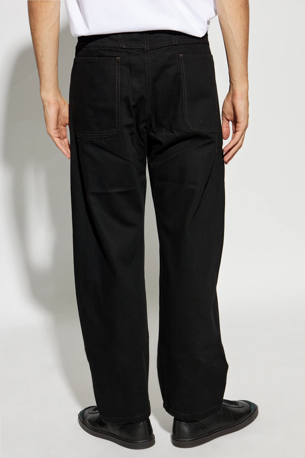 Odważ się na elegancję z Spodniami z szerokimi nogawkami od renomowanego projektanta Lemaire . Te czarne spodnie, wykonane z najwyższej jakości bawełny, łączą w sobie komfort i wyrafinowanie, oferując luźny krój z szerokimi, prostymi nogawkami.