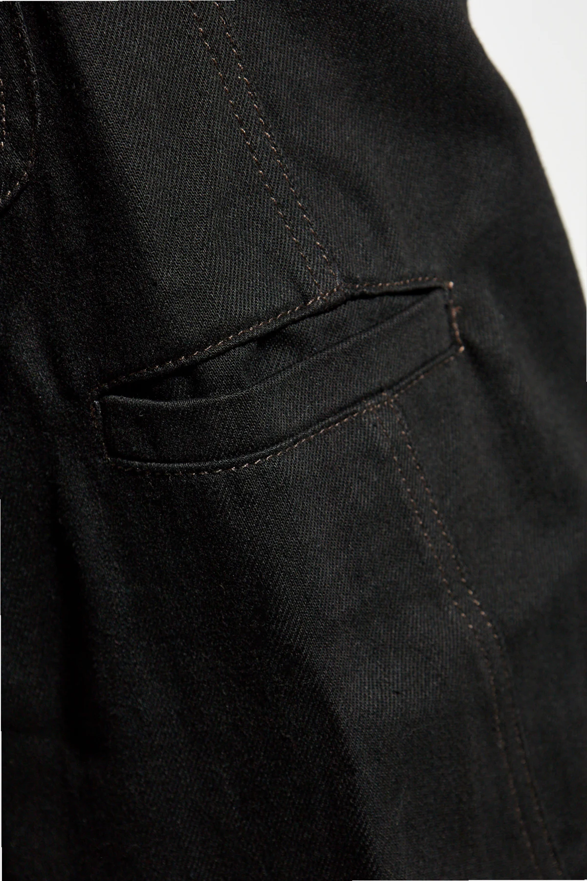Jednokolorowy, głęboki czarny odcień sprawia, że spodnie są uniwersalne i pasują do każdej okazji. Klasyczny układ kieszeni, w tym dwie przednie, dwie tylne oraz dodatkowa kieszonka z przodu, zapewnia funkcjonalność i styl. Kontrastujące szwy dodają elegancji i podkreślają precyzję wykonania.
