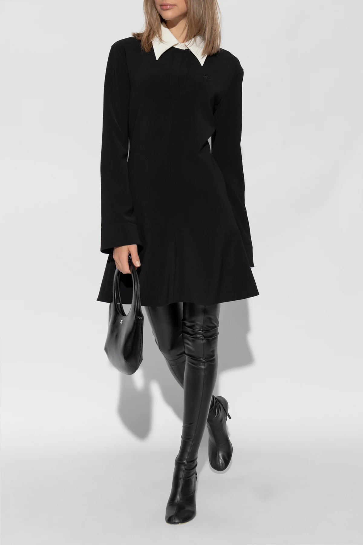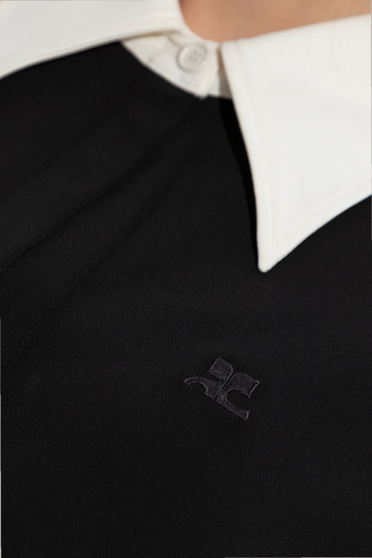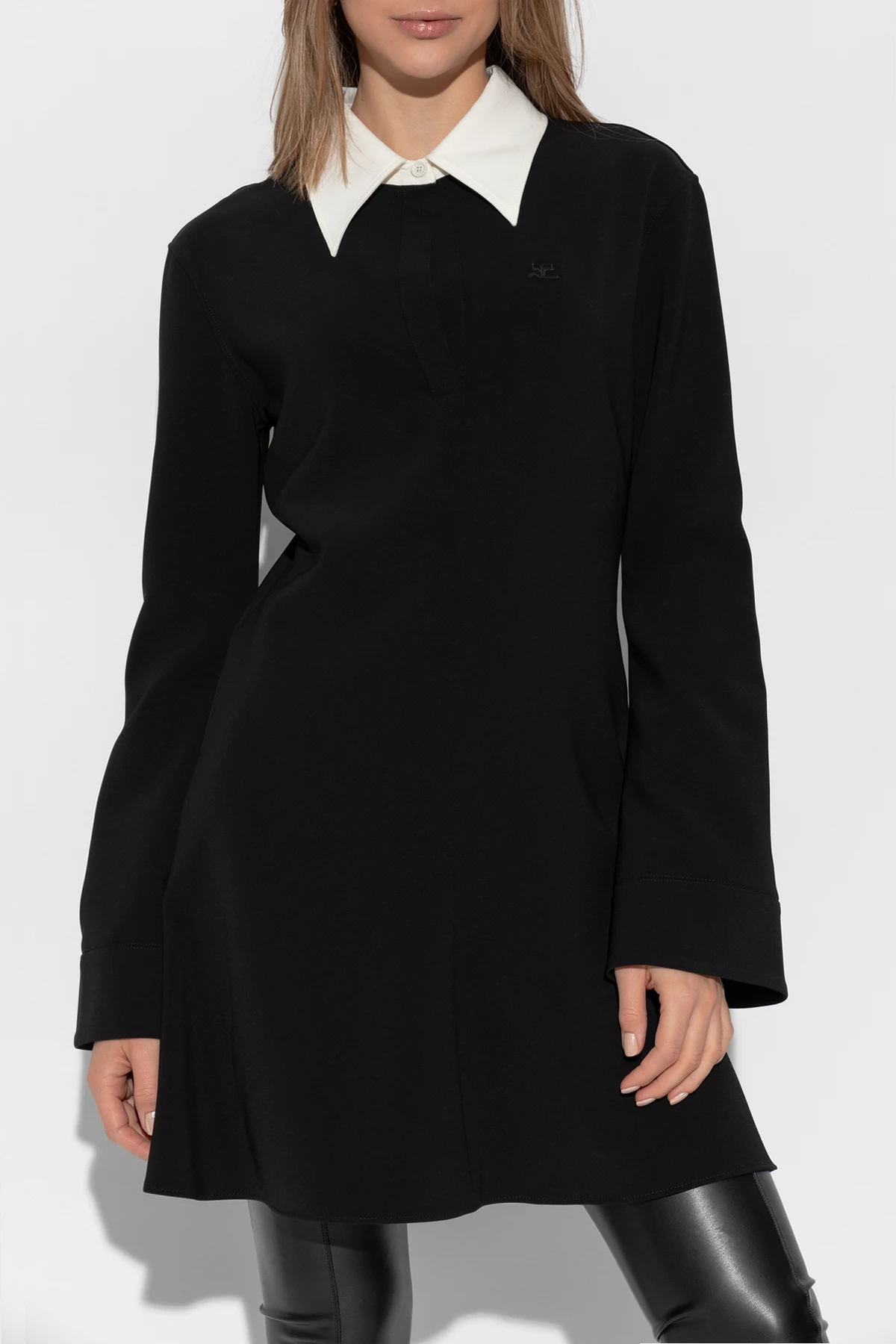 Prezentujemy Państwu Sukienkę z kołnierzem z ekskluzywnej kolekcji domu mody Courrèges . Ta czarno-biała kreacja to kwintesencja elegancji i minimalizmu, którą wyróżnia prosty, klasyczny krój z delikatnie rozszerzanym dołem. Długie rękawy dodają jej szlachetności, a kontrastowy, biały kołnierz stanowi intrygujący akcent, podkreślający wyrazistość projektu.