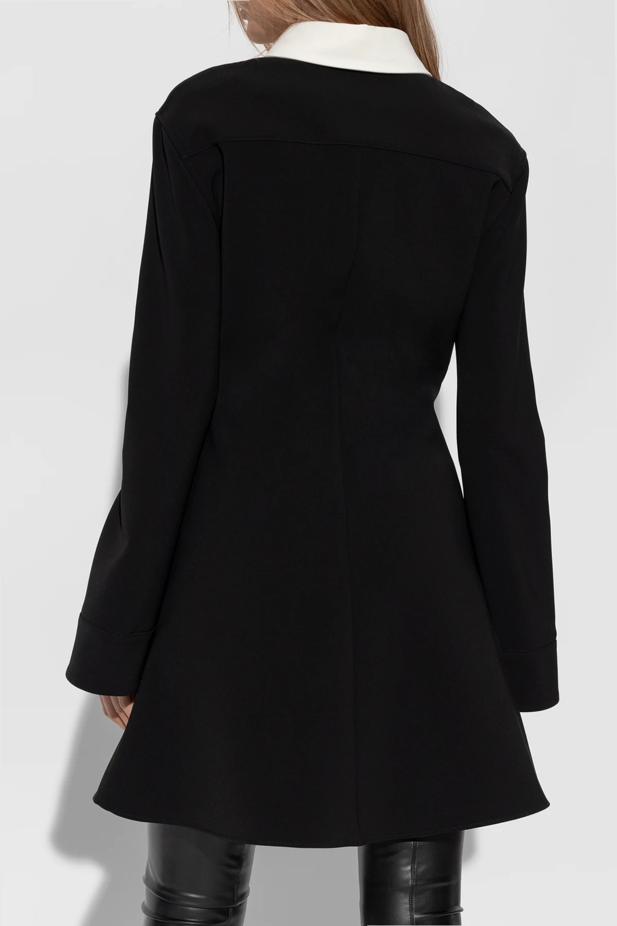 Wykonana z gładkiego materiału najwyższej jakości, w skład którego wchodzą poliester z recyklingu i poliuretan, sukienka łączy w sobie elegancję z troską o środowisko. Subtelne logo projektanta na piersi jest symbolem jej ekskluzywności.