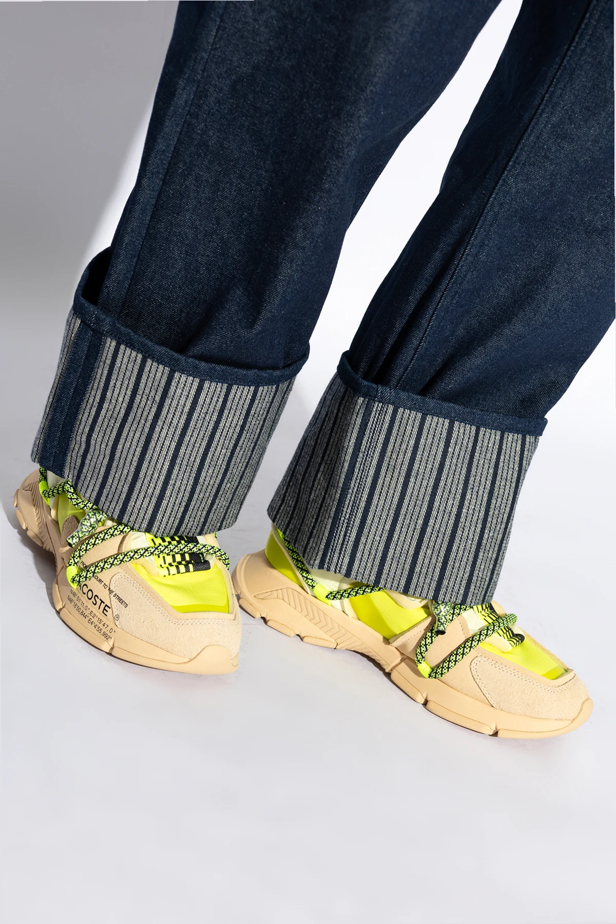 Przedstawiamy buty sportowe marki Lacoste, które urzekają swoją nowoczesną sylwetką i dynamicznymi liniami. Te niskoprofilowe sneakersy o śmiałej kombinacji beżu i neonowej żółci to esencja wyrazistego stylu i niebanalnego smaku.