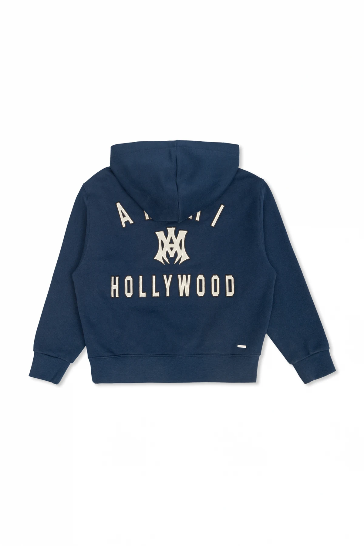 Przedstawiamy granatową bluzę z kapturem od Amiri Kids , będącą kwintesencją elegancji i stylu w casualowym wydaniu. Na lewej piersi dyskretnie umieszczono białe logo, zaś tył zdobią duże napisy "AMIRI HOLLYWOOD", podkreślające ekskluzywność kolekcji. Bluza wykonana jest z wysokiej jakości bawełny, co zapewnia komfort noszenia oraz trwałość.