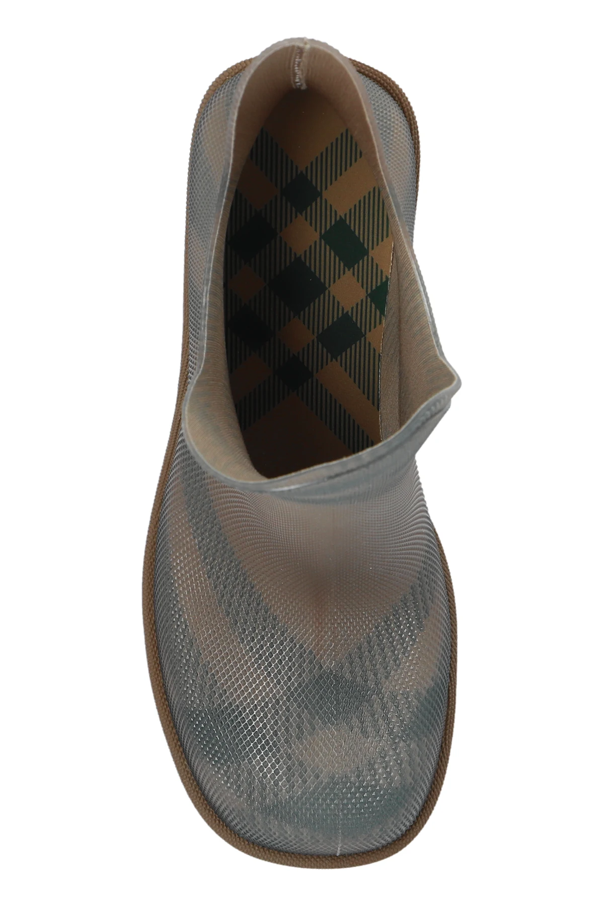 Prezentujemy Państwu ekskluzywne kalosze ‘Marsh’ od cenionej marki Burberry , które łączą w sobie funkcjonalność z wyrafinowanym stylem. Dominujący beżowy kolor harmonijnie przeplata się z ciemniejszymi akcentami, tworząc subtelny, lecz wyrazisty wzór. Każdy detal tych butów został starannie przemyślany, aby zapewnić użytkownikom nie tylko komfort, ale i niepodważalną elegancję.