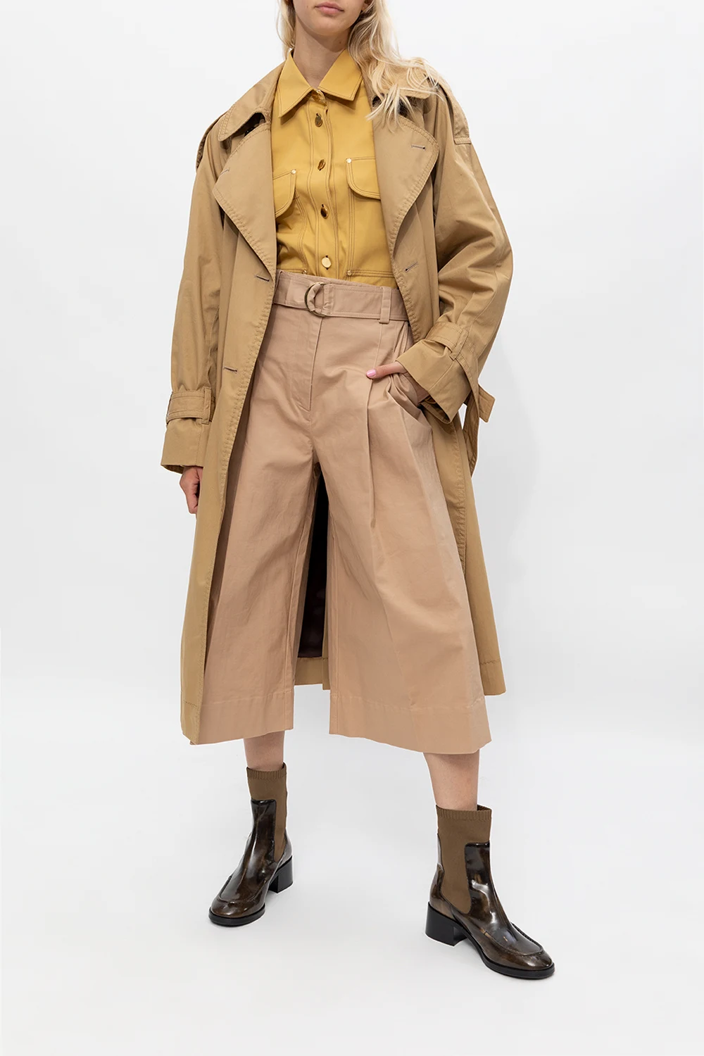 Brązowe botki na obcasie, model ‘Wendy’ See By Chloe. Wykończone lakierowaną skórą. Wyszyte logo. Czarna, gumowa podeszwa.