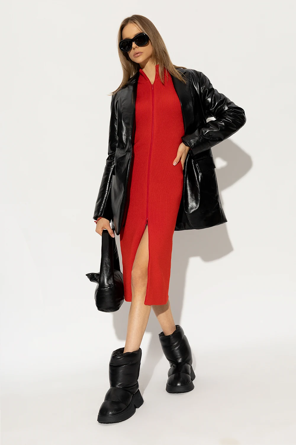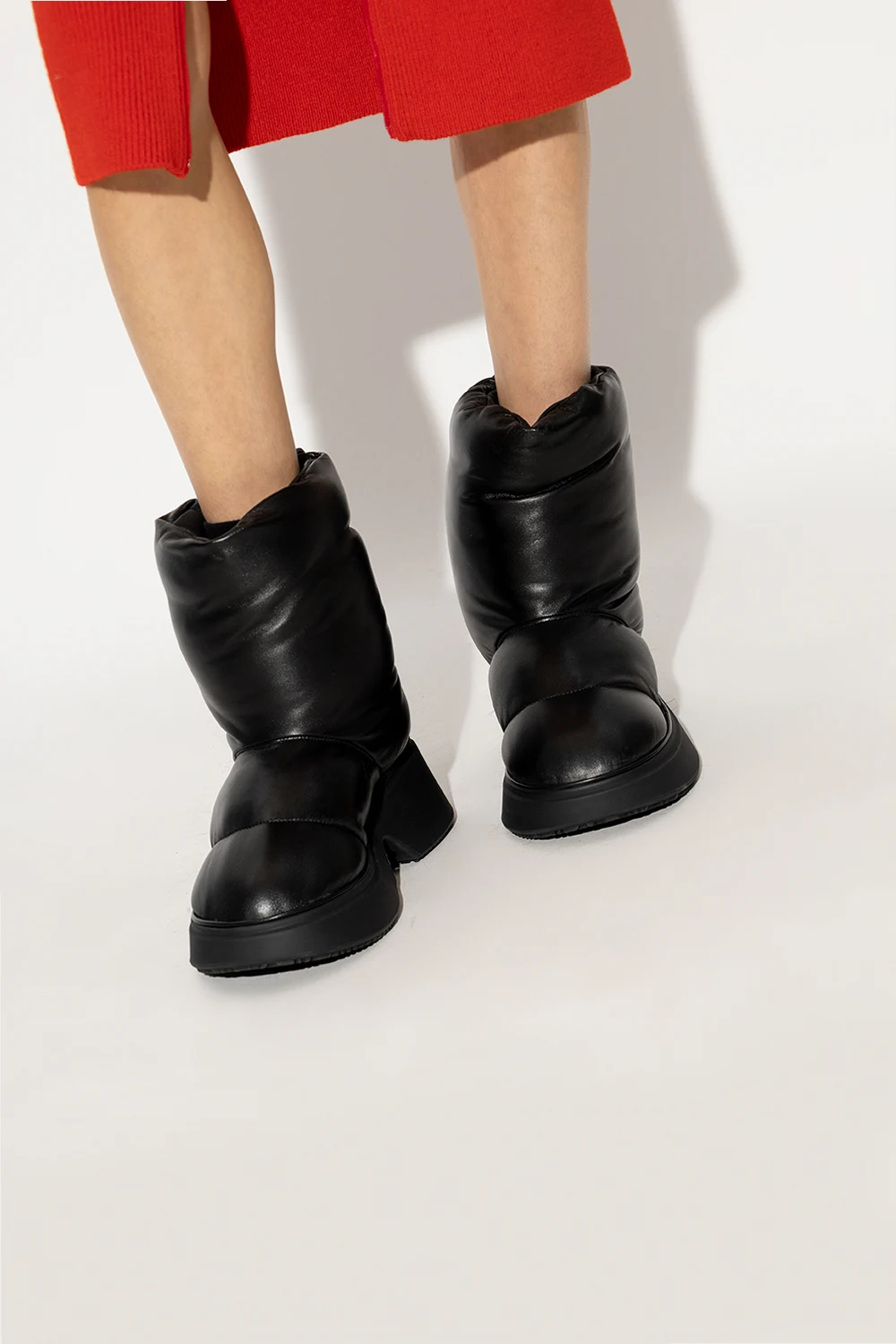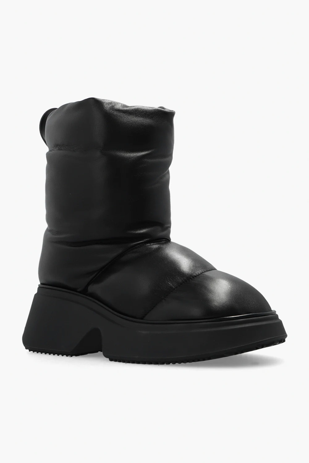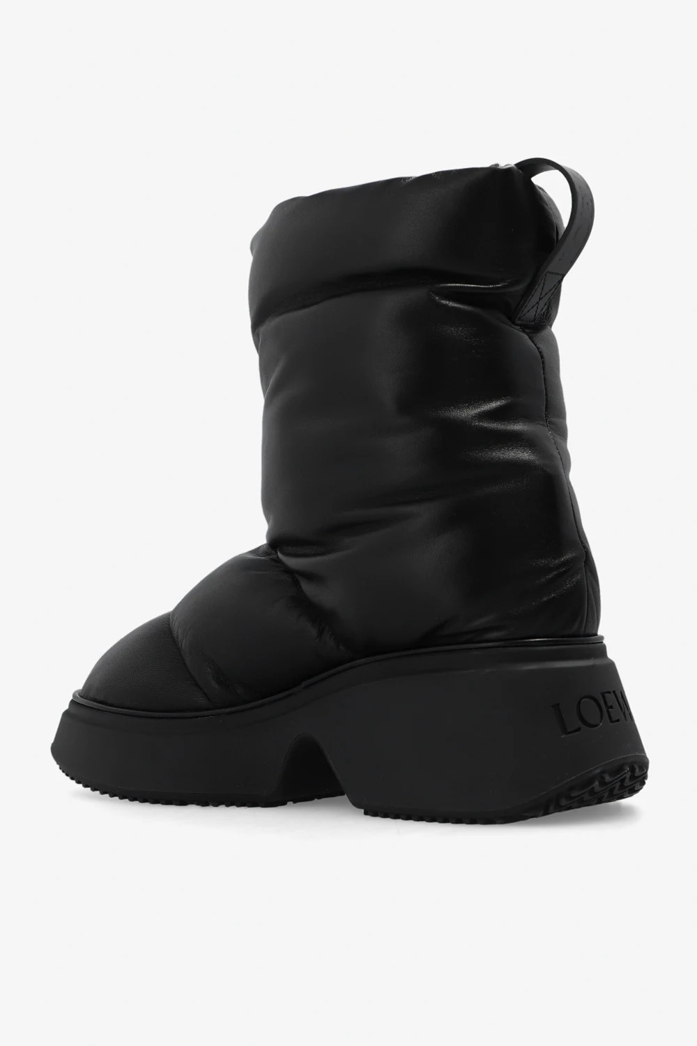 Czarne, pikowane buty za kostkę Loewe. Wykonane z jagnięcej skóry. Z tyłu uchwyt ozdobiony wtłoczonym logo. Czarna, gumowa podeszwa.