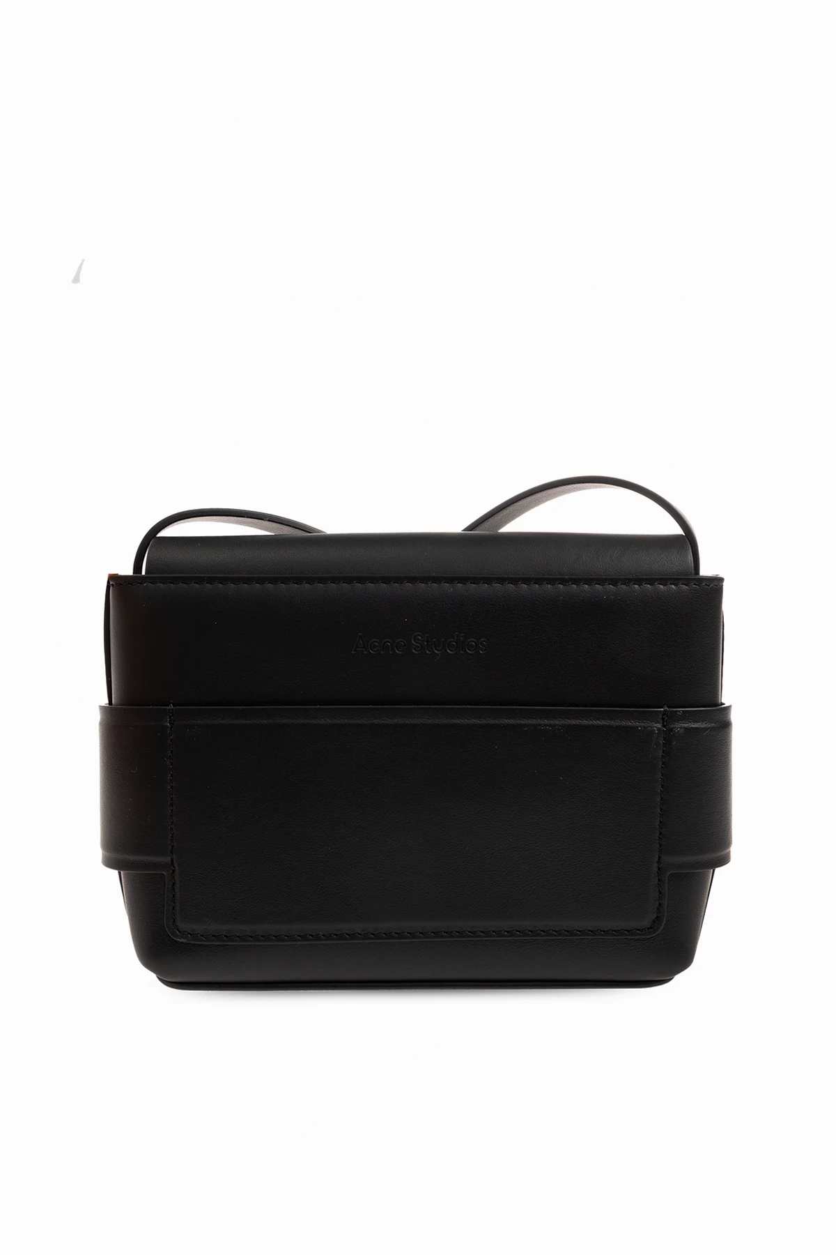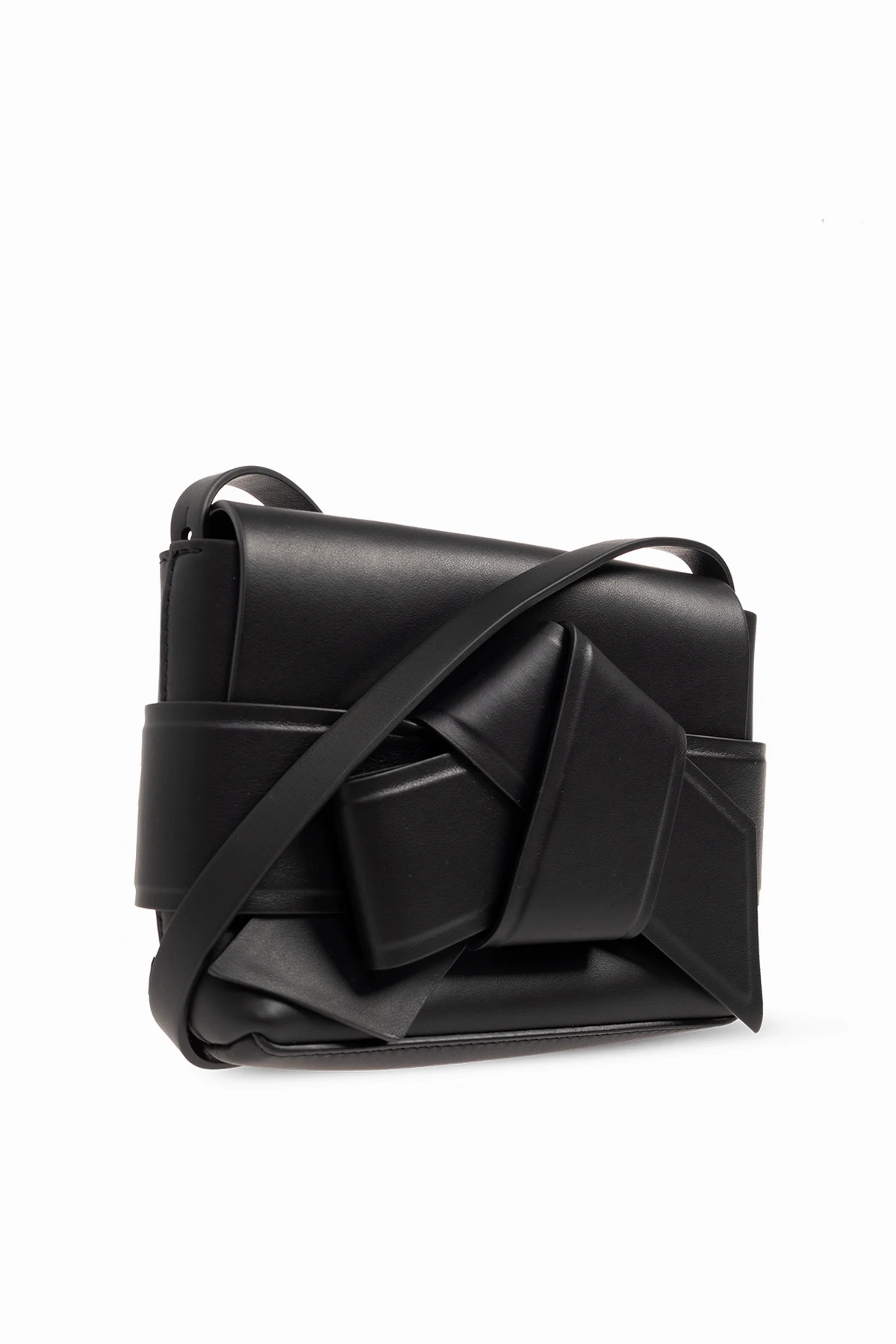 Czarna torba na ramię, model ‘Musubi Mini’ Acne Studios. Wykonana ze skóry cielęcej. Zamykana na wsuwaną klapę. Z przodu, inspirowany tradycyjnymi japońskimi szarfami obi, pas z dekoracyjnym węzłem. Z tyłu wytłoczone logo. Regulowany pas na ramię. Wewnątrz komora z trzema miejscami na karty.
