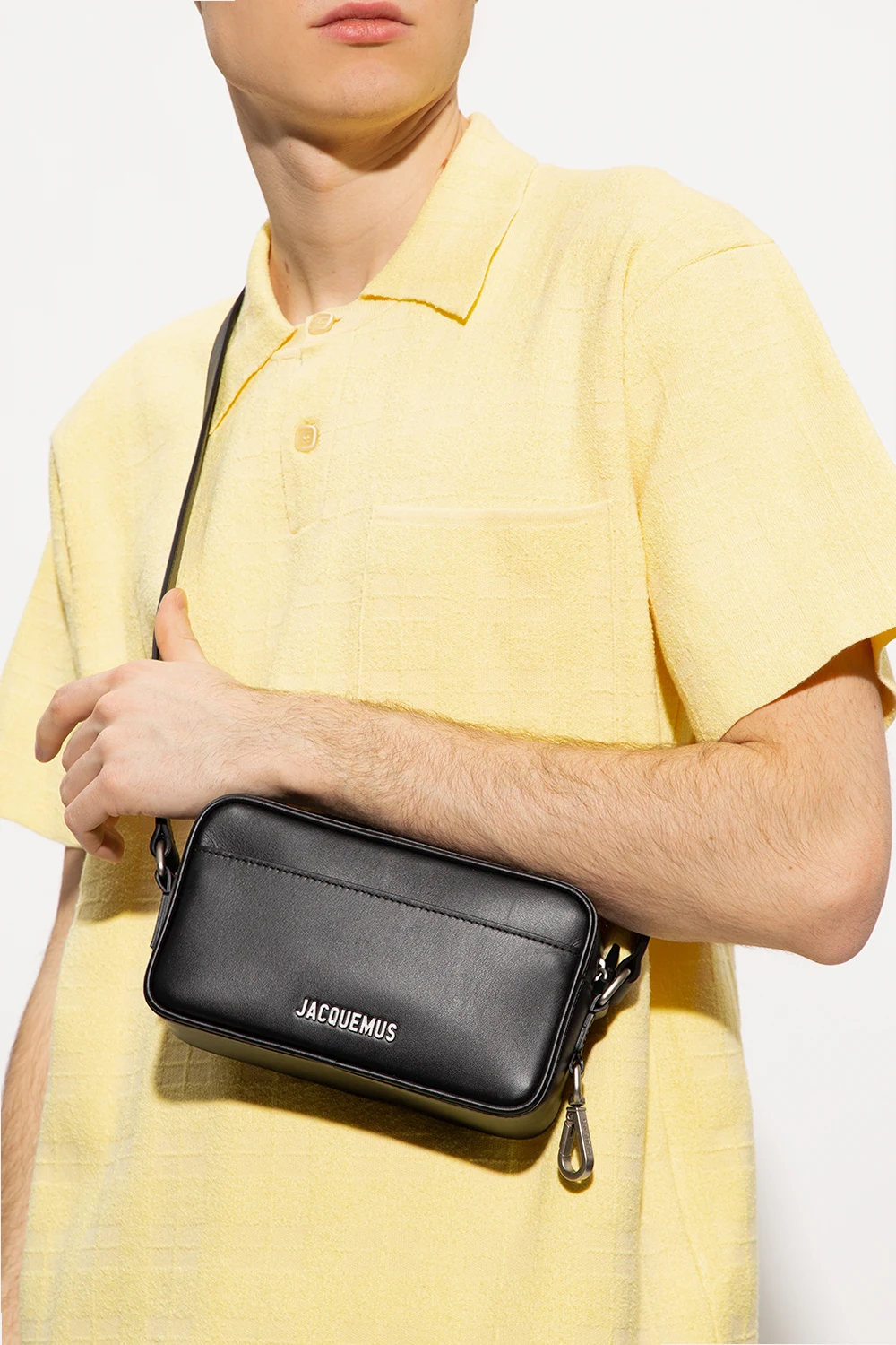 Czarna torba na ramię, model ‘Le Baneto’ Jacquemus. Wykonana ze skóry krowiej. Zamykana na zamek. Z przodu metalowe logo. Dwie wsuwane kieszenie: jedna z przodu i jedna z tyłu. Regulowany pasek na ramię. Wewnątrz komora i miejsce na kartę. Metalowe elementy w kolorze srebrnym.