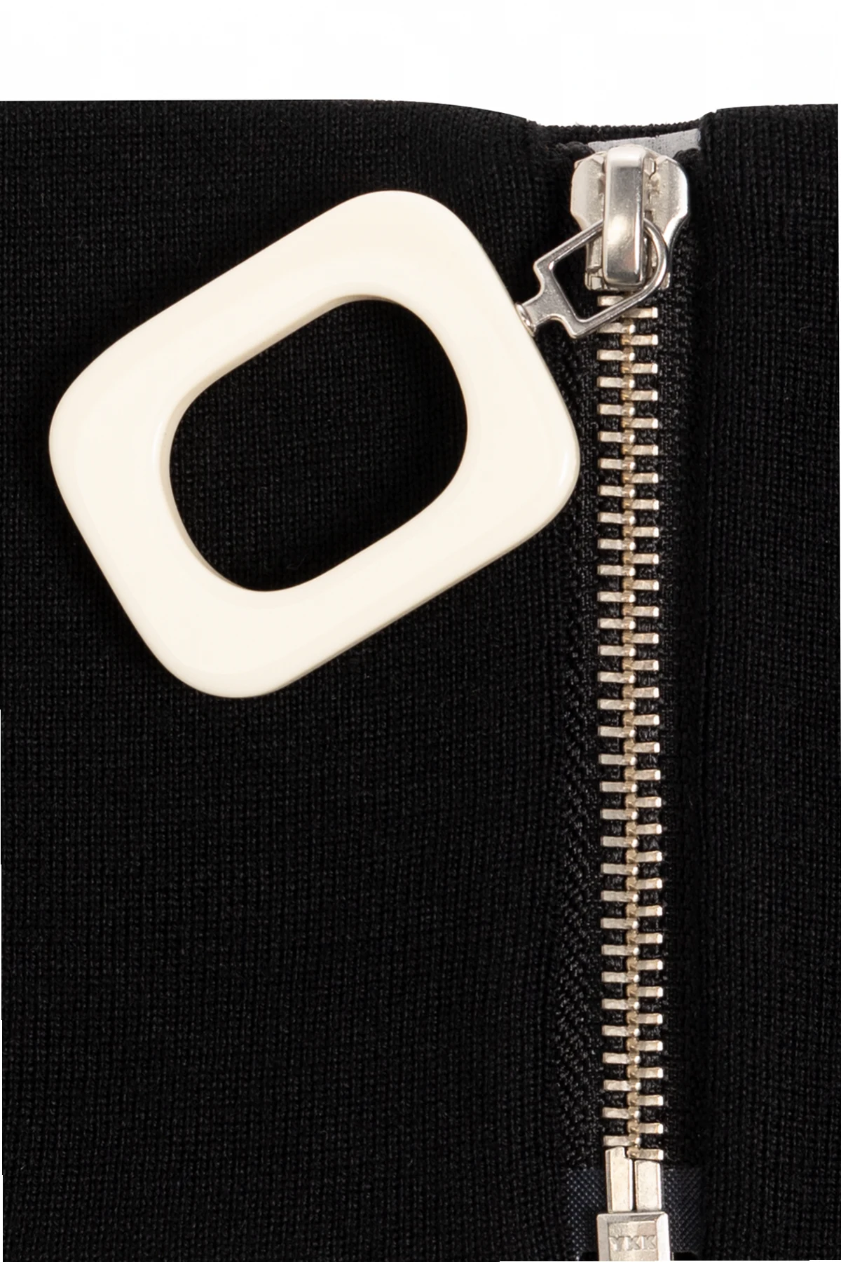 Czarna opaska na szyję JW Anderson. Wykonana z wełny. Zapinana na zamek ozdobiony dekoracyjną zawieszką w kolorze kremowym.