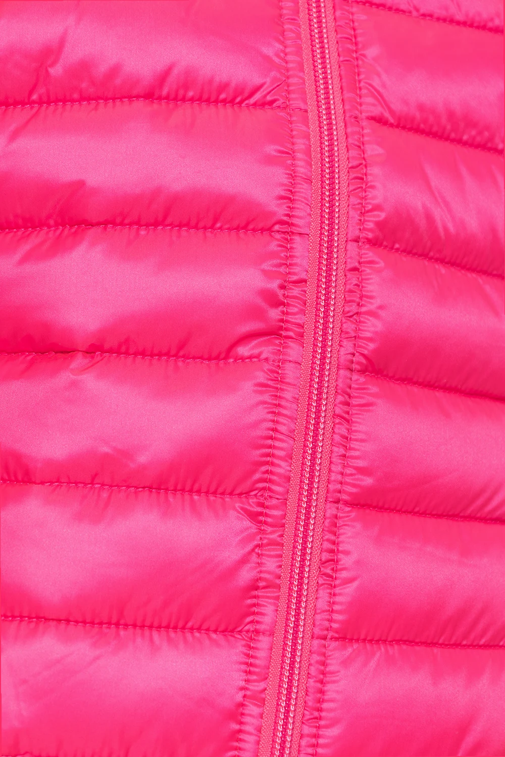 Neonoworóżowa, pikowana kurtka, model ‘Kyla’ Save The Duck. Zapinana na dwubiegunowy zamek. Z przodu dwie kieszenie zapinane na zamek. Długie rękawy - na jednym gumowa naszywka z logo.
