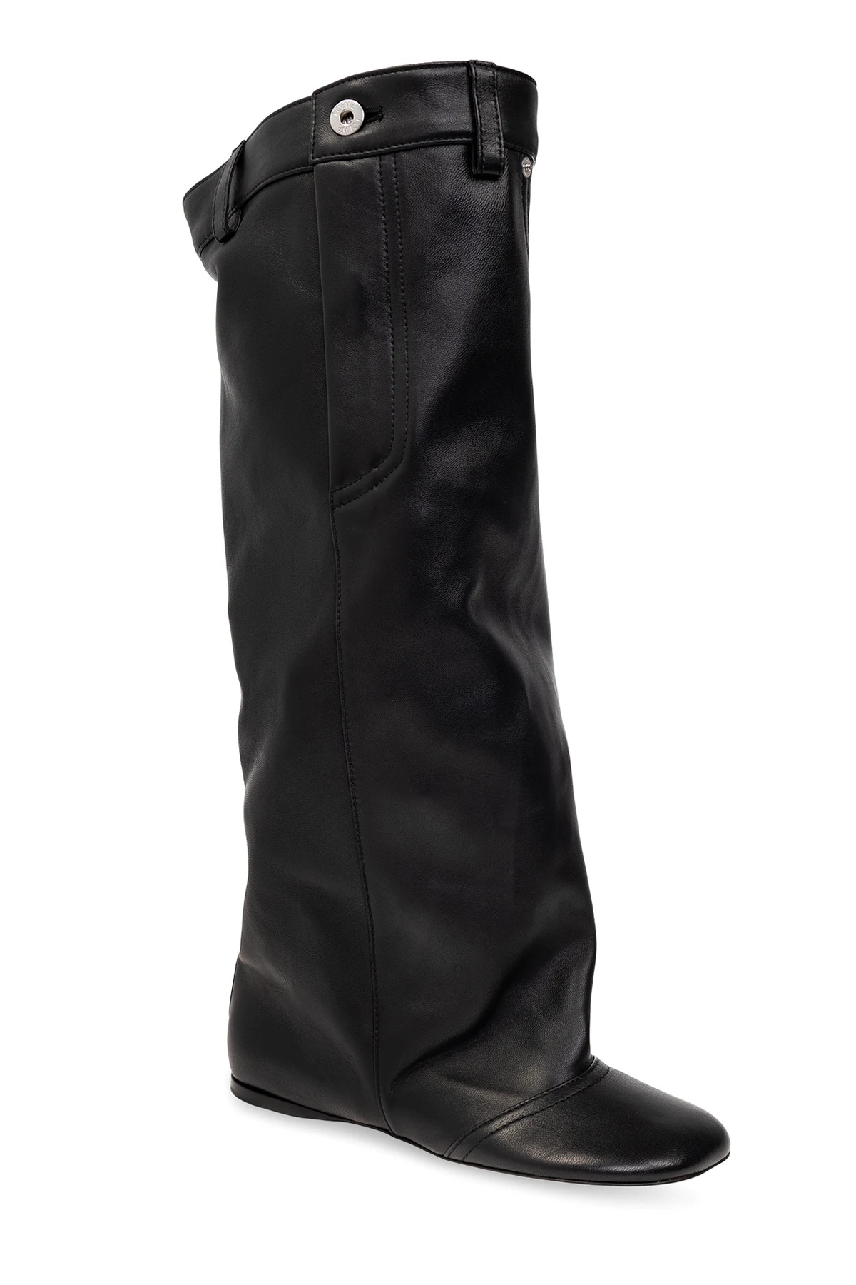 Czarne buty, model ‘Toy’ Loewe. Wykonane ze skóry jagnięcej. Zapinane na zamek oraz guzik. Ten hybrydowy projekt zestawia detale klasycznych spodni z pięcioma kieszeniami z charakterystycznym dla marki noskiem w kształcie płatka. Beżowa, skórzana podeszwa.