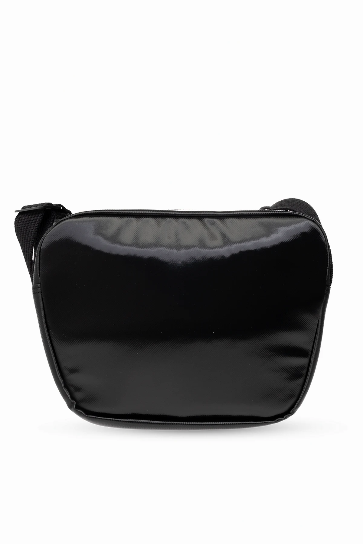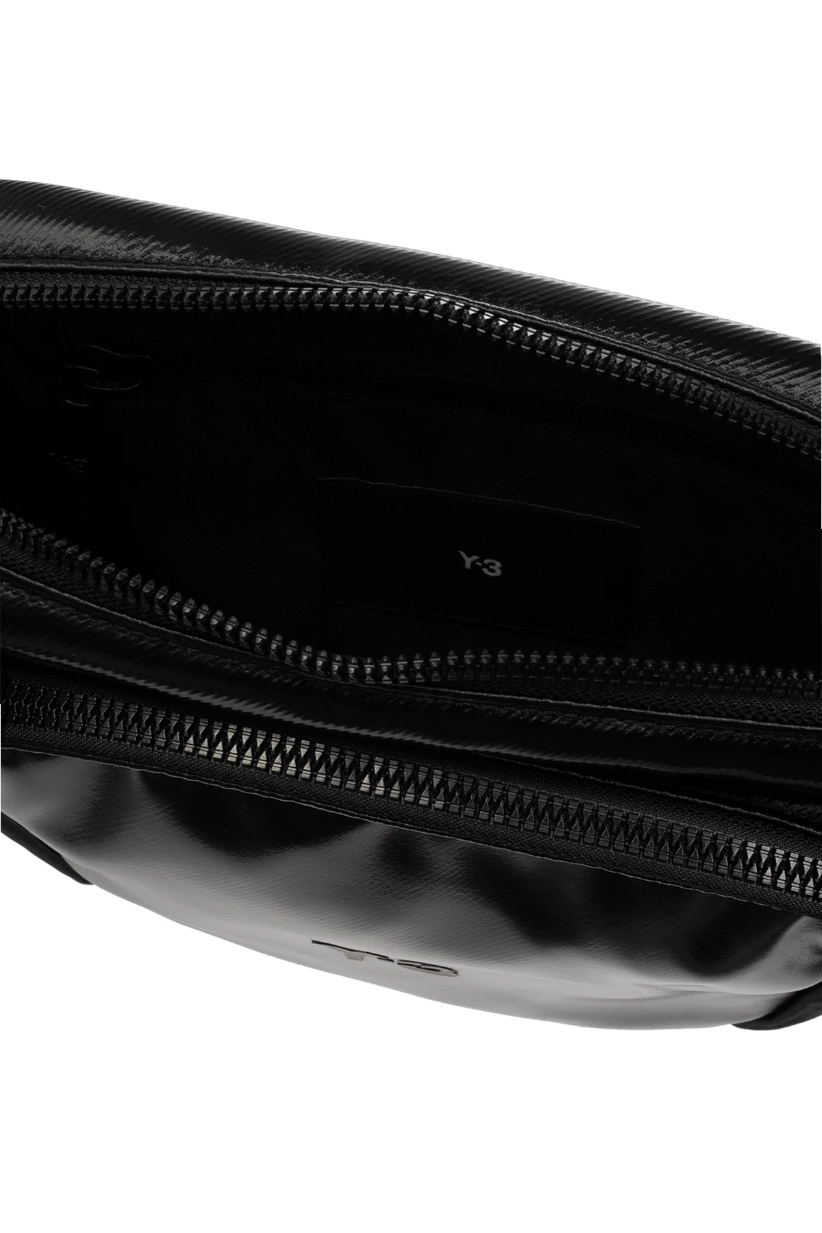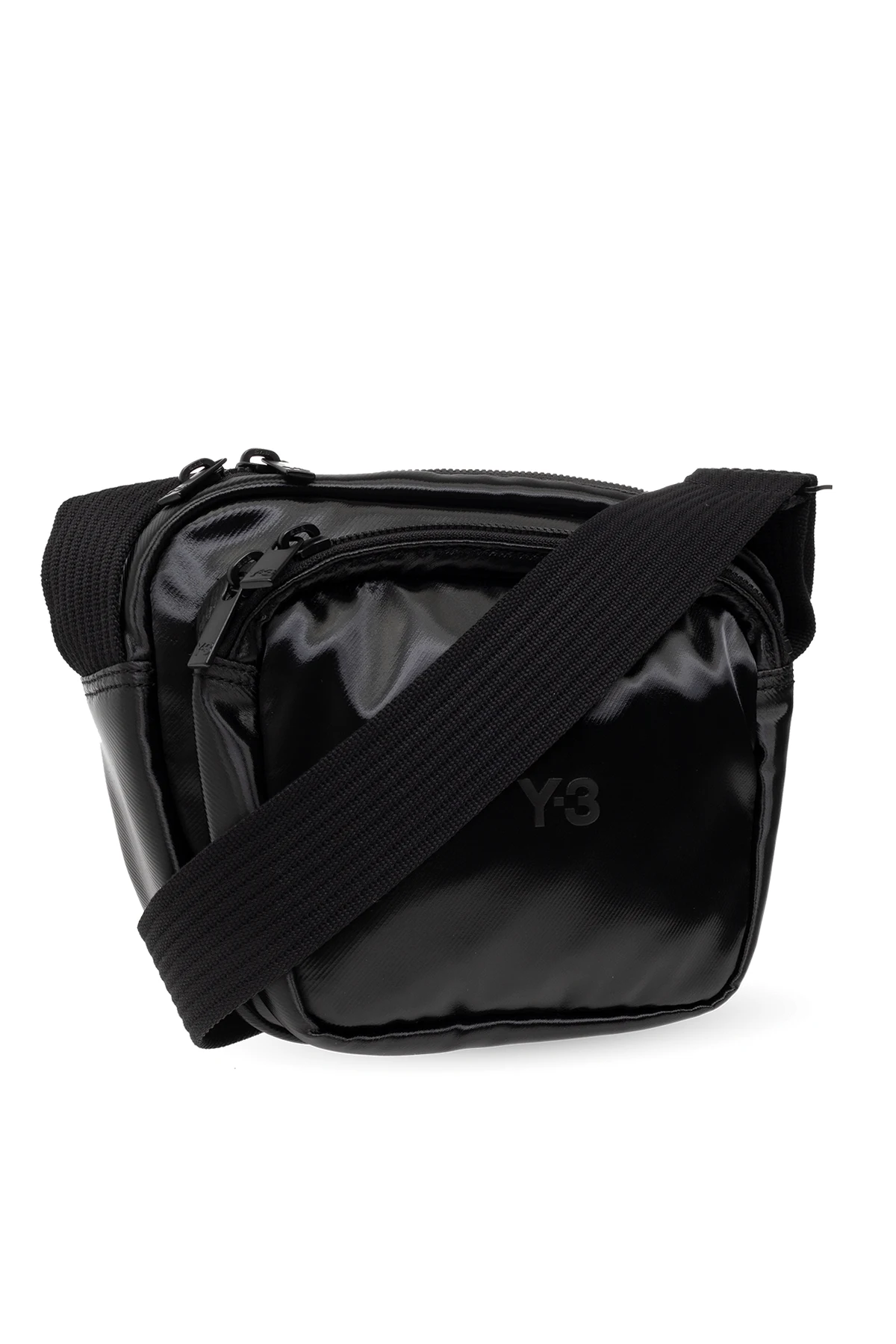 Czarna torba na ramię Y-3 Yohji Yamamoto. Wykonana z materiału z efektem połysku. Dwie oddzielne komory zamykane na dwubiegunowy zamek. Z przodu ozdobiona logo. Długi, regulowany pasek. Wewnątrz kieszeń zamykana na zamek.