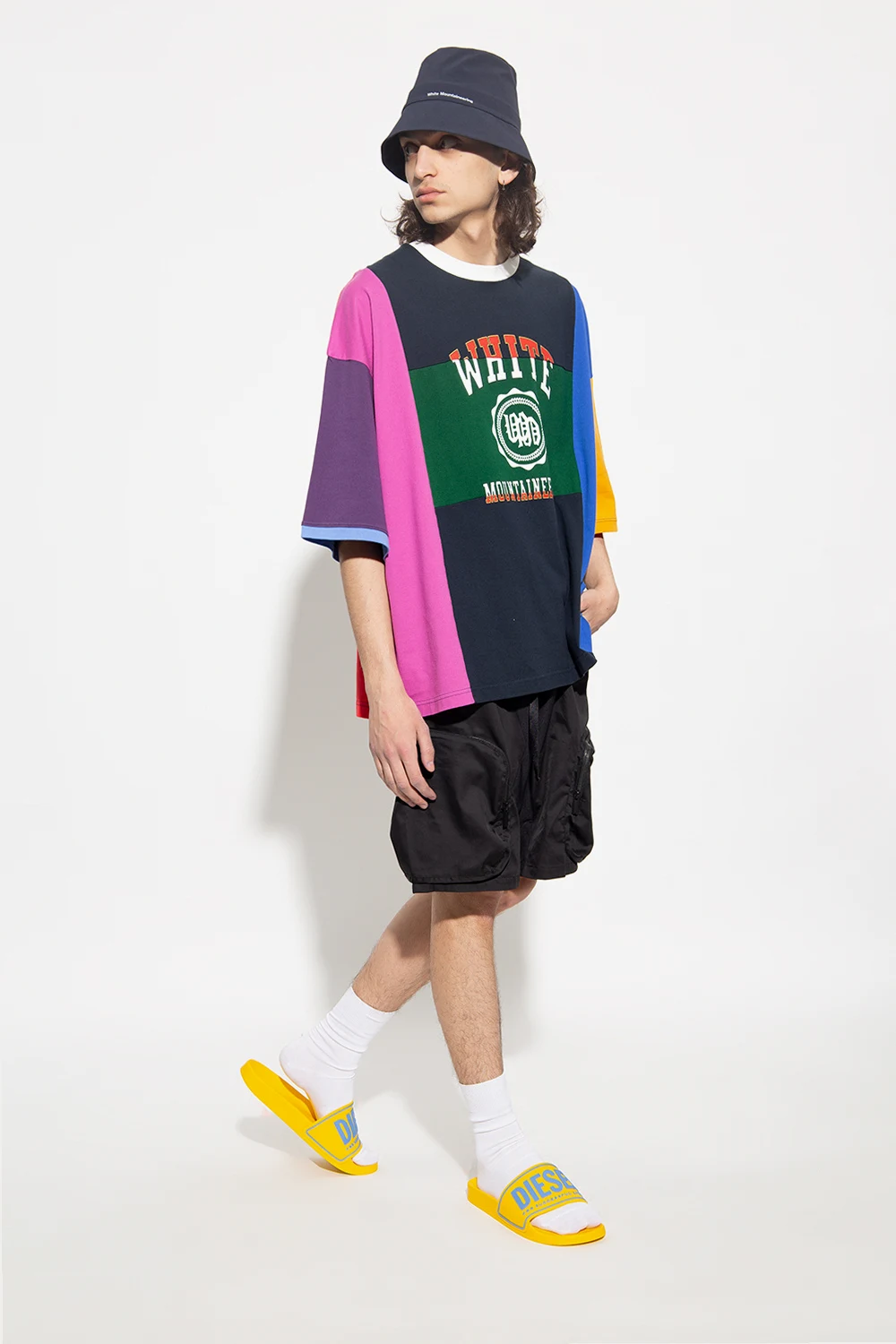 Żółto-niebieskie klapki, model 'SA-MAYEMI' Diesel. Żółta, gumowa podeszwa.