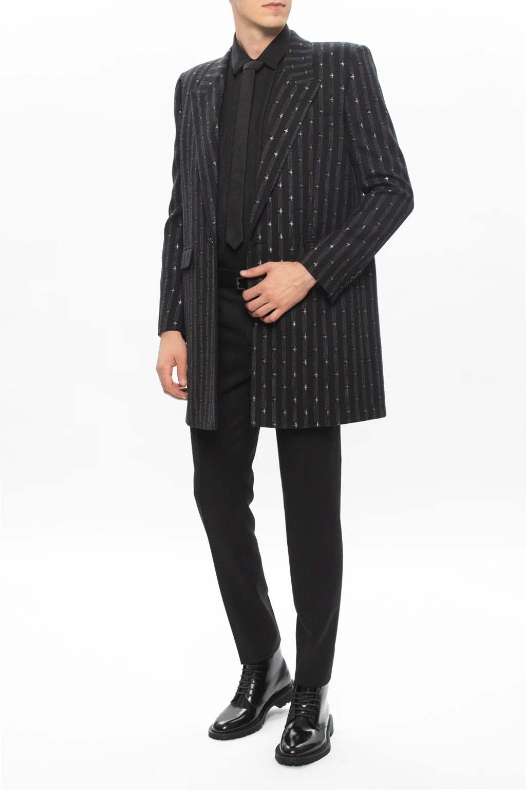 Czarne, lakierowane, sznurowane botki Saint Laurent. Wykonane ze skóry. Czarna, gumowa podeszwa.