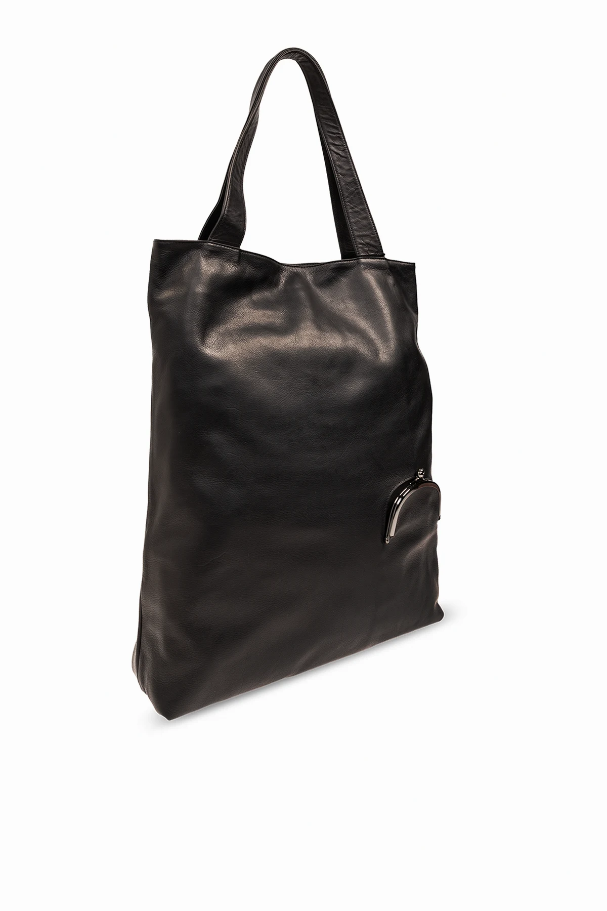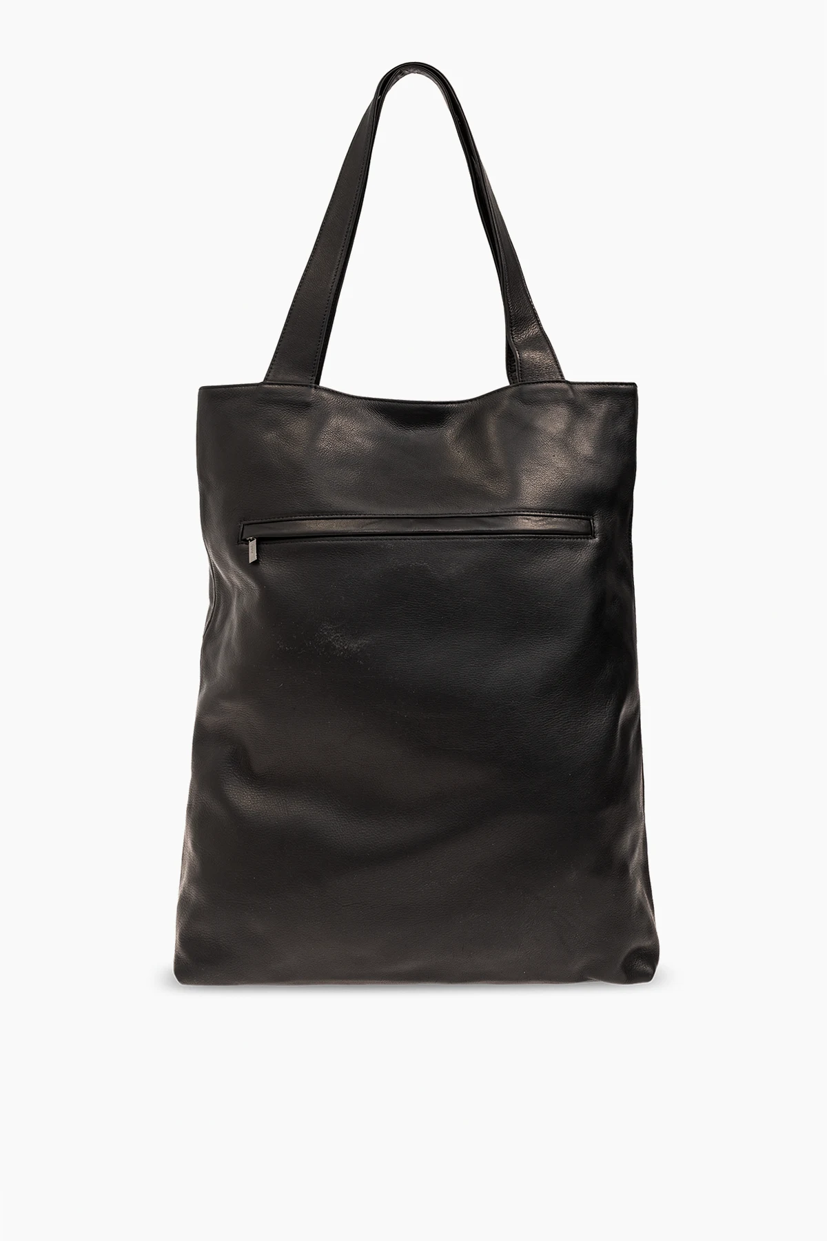 Czarna torba na ramię typu ‘shopper’ Discord Yohji Yamamoto. Wykonana ze skóry. Zamykana na magnetyczny zatrzask. Z przodu kieszeń z motywem portmonetki zamykana na zatrzask. Z tyłu kieszeń zamykana na zamek. Dwie półokrągłe rączki. Wewnątrz komora, kieszeń zamykana na zamek i dwie wsuwane. Metalowe elementy w kolorze ciemnego srebra.