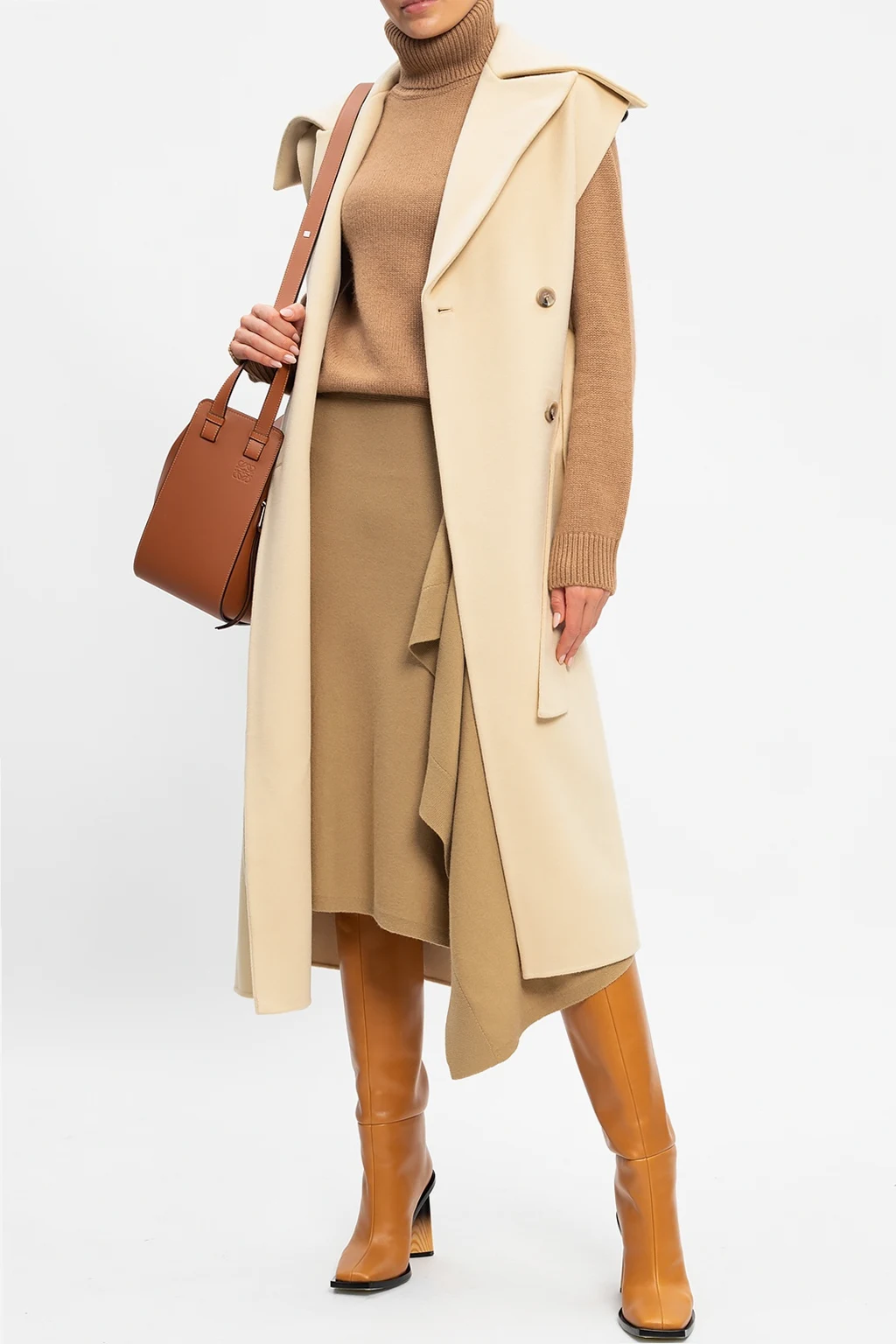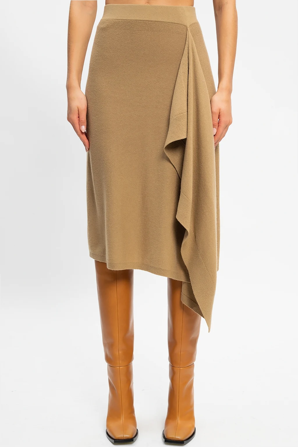 – Jasnobeżowa spódnica maxi marszczona w talii