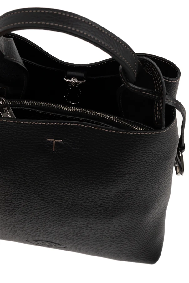 Przedstawiamy Państwu elegancką torbę do ręki od renomowanego projektanta Tod’s, która stanowi kwintesencję klasycznego designu i nowoczesnej elegancji. Wykonana z najwyższej jakości czarnej skóry o ziarnistej fakturze, torba zachwyca wyrafinowanym wyglądem i dbałością o detale.