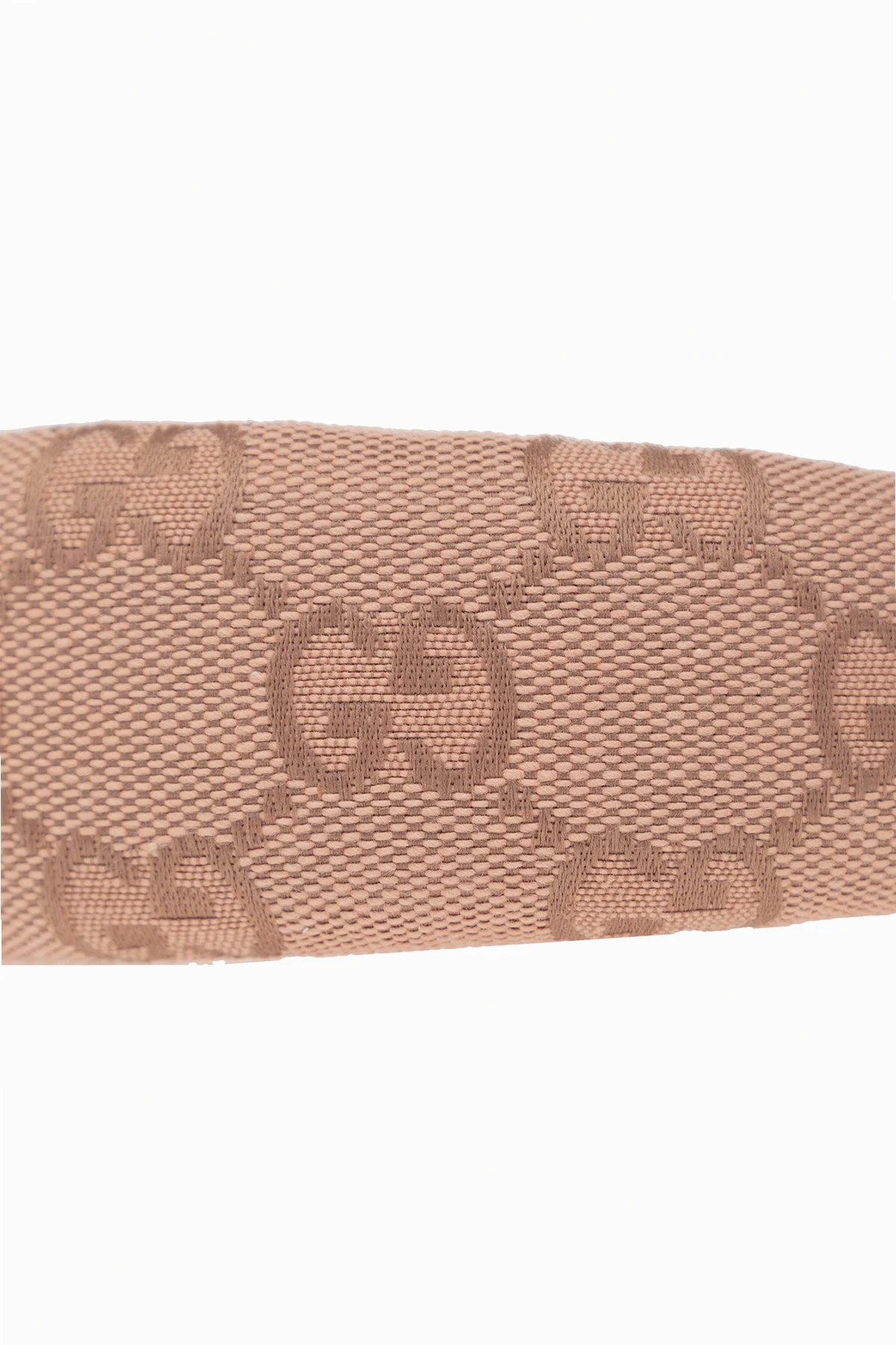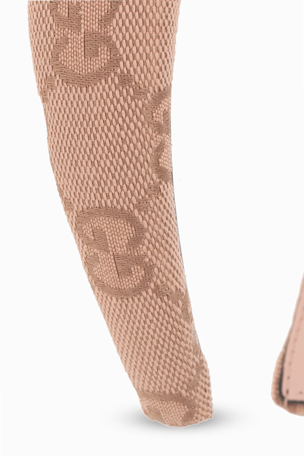 Różowa opaska na głowę Gucci. Wykonana z mieszanki bawełny. Ozdobiona wzorem z monogramem.