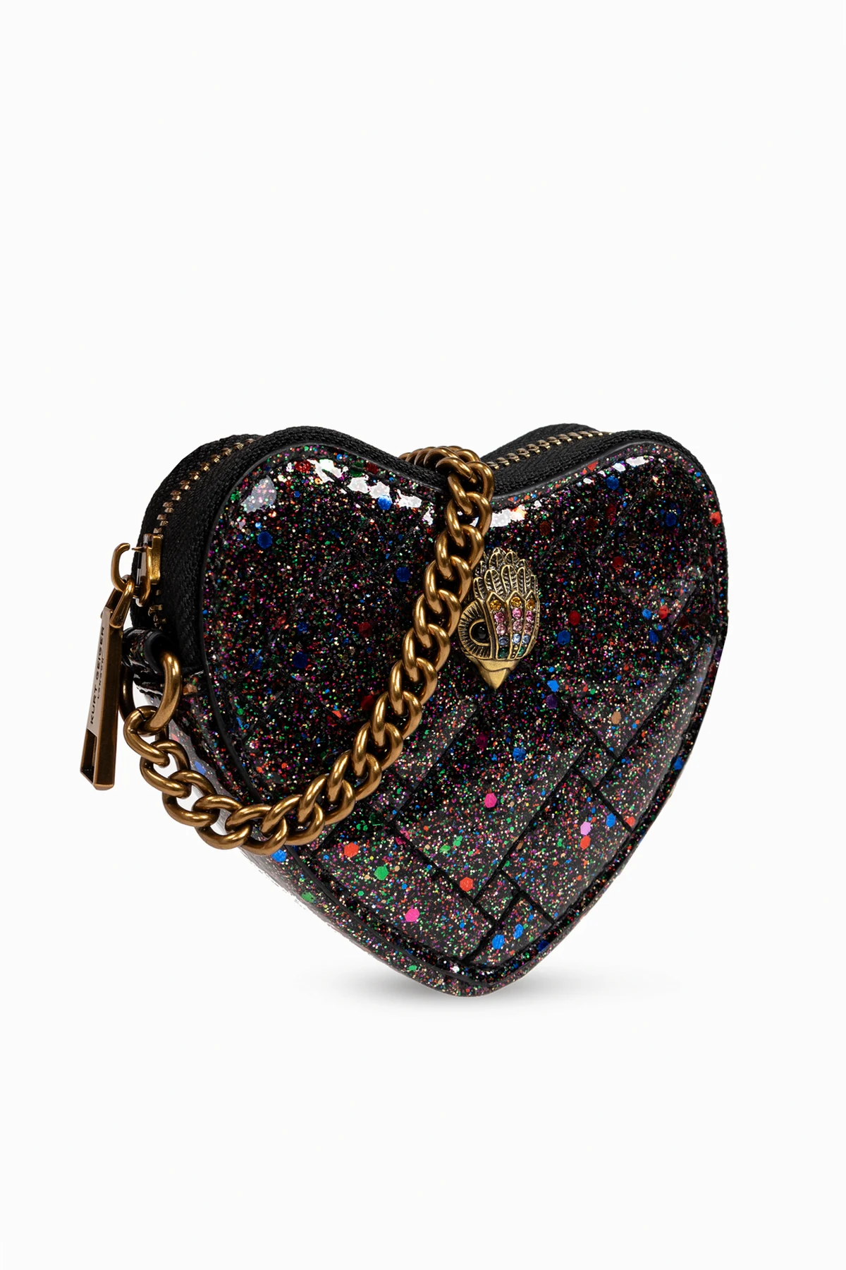 Torba na ramię Heart Micro to kwintesencja elegancji i wyszukanego stylu brytyjskiej marki Kurt Geiger. Wyróżniająca się unikalnym kształtem serca oraz połyskującą powierzchnią pokrytą kolorowymi brokatowymi drobinkami, przyciąga wzrok i nadaje każdej stylizacji luksusowego charakteru.