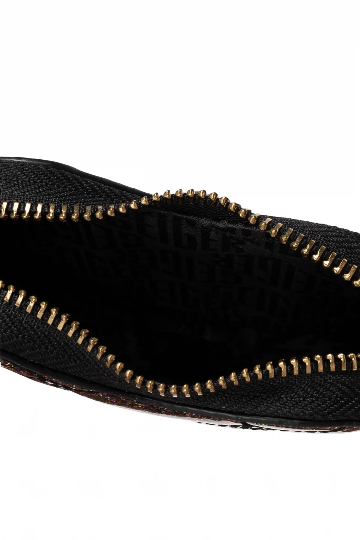 Dominujący czarny kolor torby, wzbogacony o mieniące się brokatowe drobinki, tworzy efektowny i stylowy dodatek, idealny na wieczorowe wyjścia. Wnętrze torby wykończone jest materiałem z monogramem projektanta, co dodatkowo podkreśla jej ekskluzywny charakter.