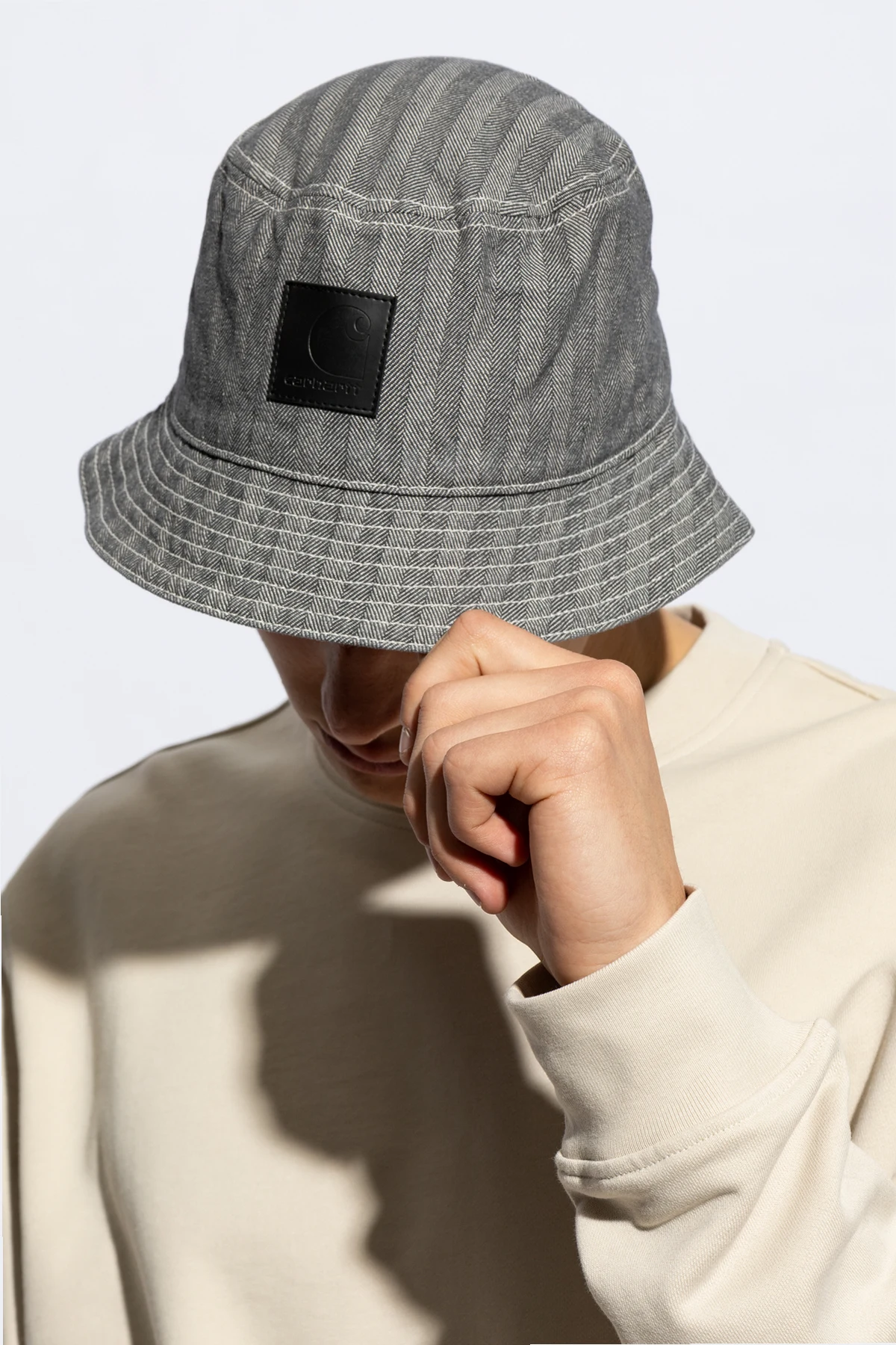 Prezentujemy Państwu wyjątkowy kapelusz w stylu bucket hat od renomowanego projektanta Carhartt WIP , który łączy w sobie elegancję i uniwersalność. Jego subtelna kolorystyka, dominujący odcień szary, została urozmaicona przez wyrafinowany wzór w jodełkę. Taka kompozycja nadaje kapeluszowi teksturę, głębię oraz niepowtarzalny charakter.
