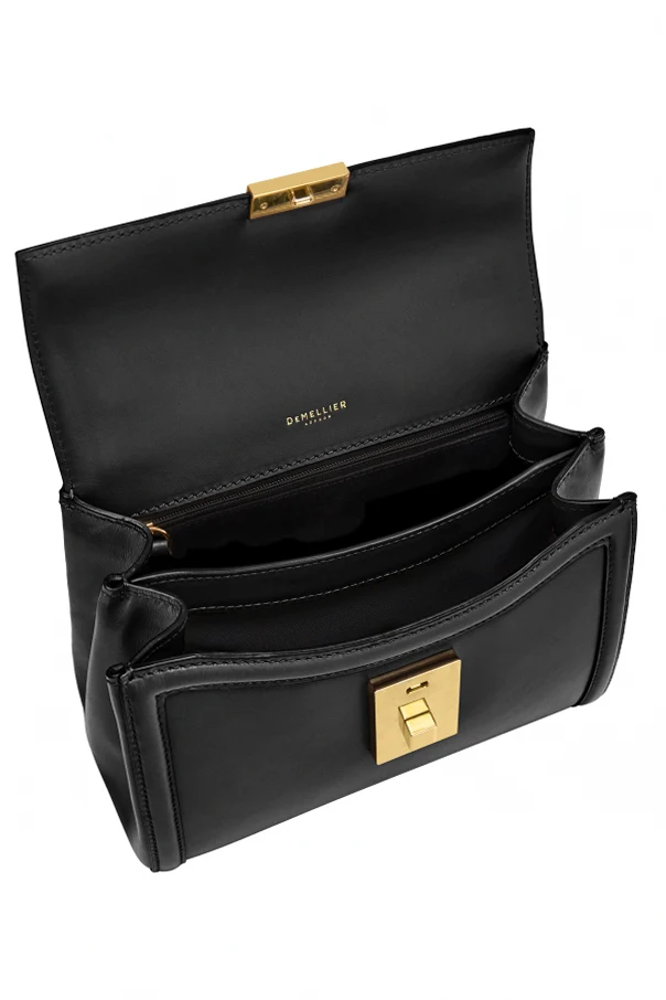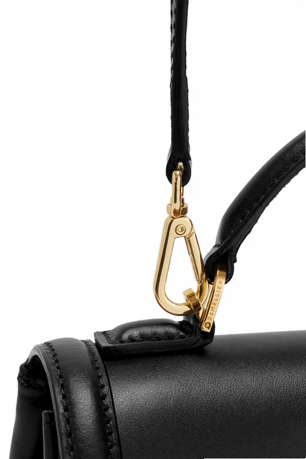 Torba do ręki Paris projektanta DeMellier zachwyca wyrafinowaną prostotą i ponadczasową elegancją. Jej strukturalny, prostokątny kształt z delikatnie zaokrąglonymi krawędziami oraz sztywna konstrukcja są wyrazem kunsztu rzemieślniczego. Gładka, głęboko czarna skóra licowa o satynowym połysku emanuje luksusem, podkreślając unikatowy charakter torby. Wyjątkowy akcent w postaci dużego, złotego zapięcia typu "push-lock" oraz subtelnych detali – takich jak złote nóżki, karabińczyki i sprzączki – harmonizuje z wyważonym minimalizmem projektu. Wnętrze wykończono szlachetną bawełną , co gwarantuje wysoki komfort użytkowania. Odpinany pasek umożliwia noszenie torby zarówno w dłoni, jak i na ramieniu. Produkt zdobi wygrawerowane logo oraz sygnatura projektanta.