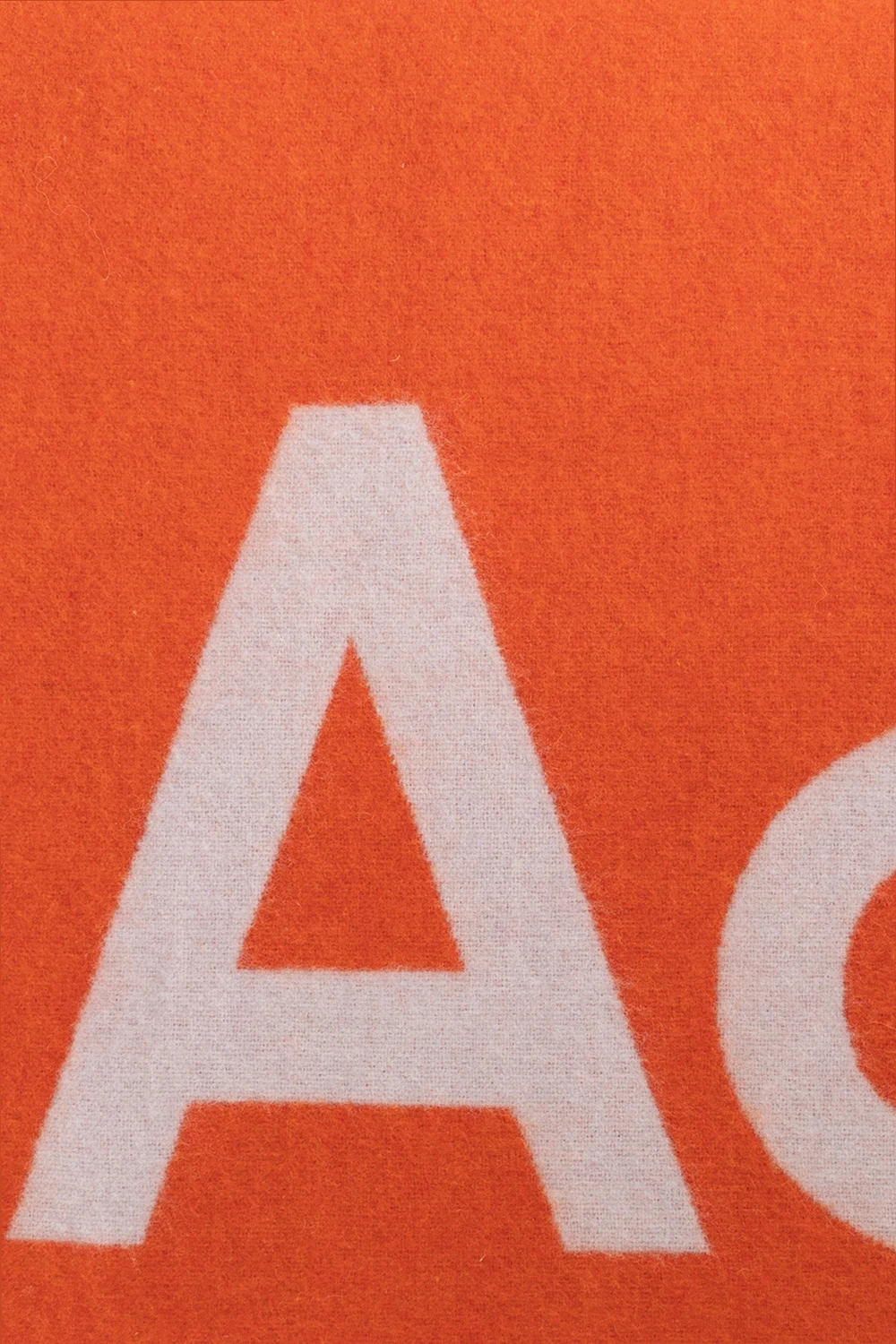 Pomarańczowo-szary, dwustronny szal Acne Studios. Wykonany z mieszanki wełny pochodzącej z recyklingu. Ozdobiony wyszytym logo.